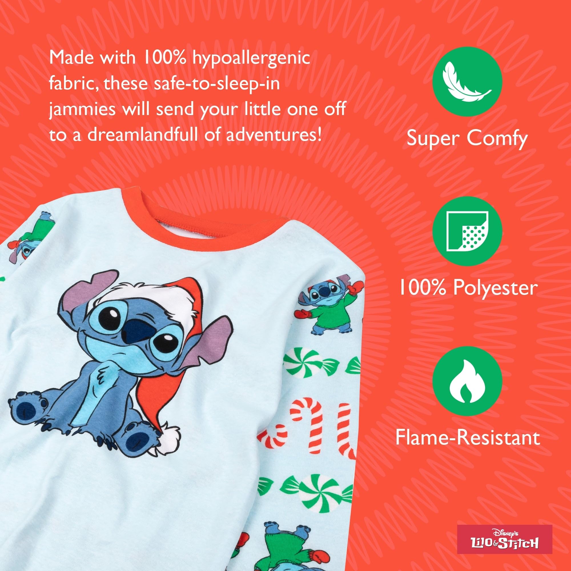ULTIMATE PAJAMA SET: An ultra-soft pajama set is a necessity in any kid's wardrobe. Featuring a fun Lilo & Stitch design and snug-fit, our pajamas are perfect for nighttime use or daily play. Officially licensed Disney product.