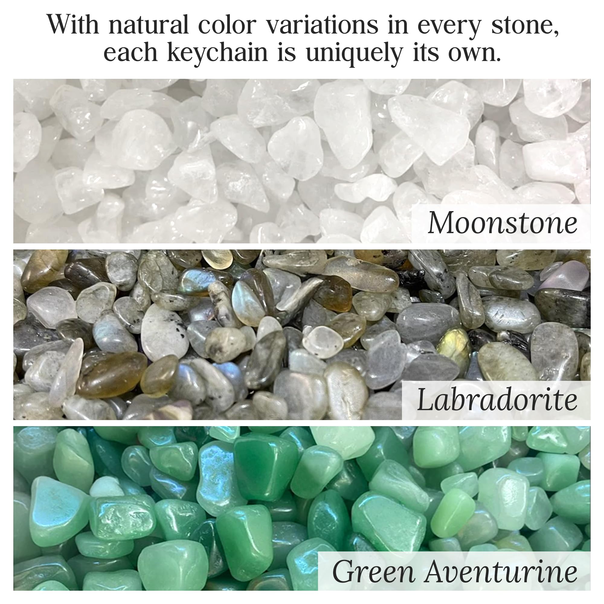 π Handmade Crystal Keychain β Crafted with Moonstone, Labradorite, and Green Aventurine. Size: 2.43β long x 0.78β wide, charm width 0.4β. Ideal crystal keychains for women seeking self love jewelry and clarity for new beginnings.