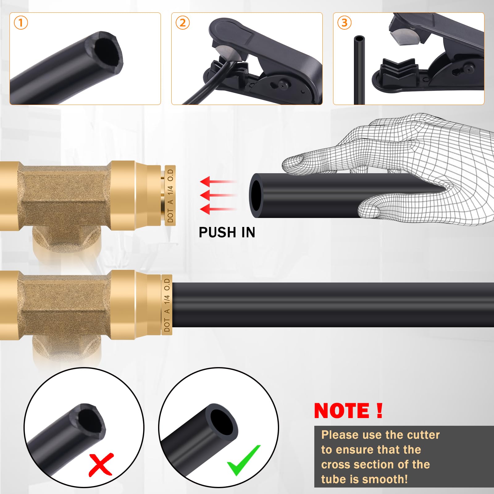 QUICK CONNECT FITTINGS: Our DOT push to connect fittings are extremely easy to install, can be sealed by pushing the tube firmly into the fitting and are also simple to remove from the tube