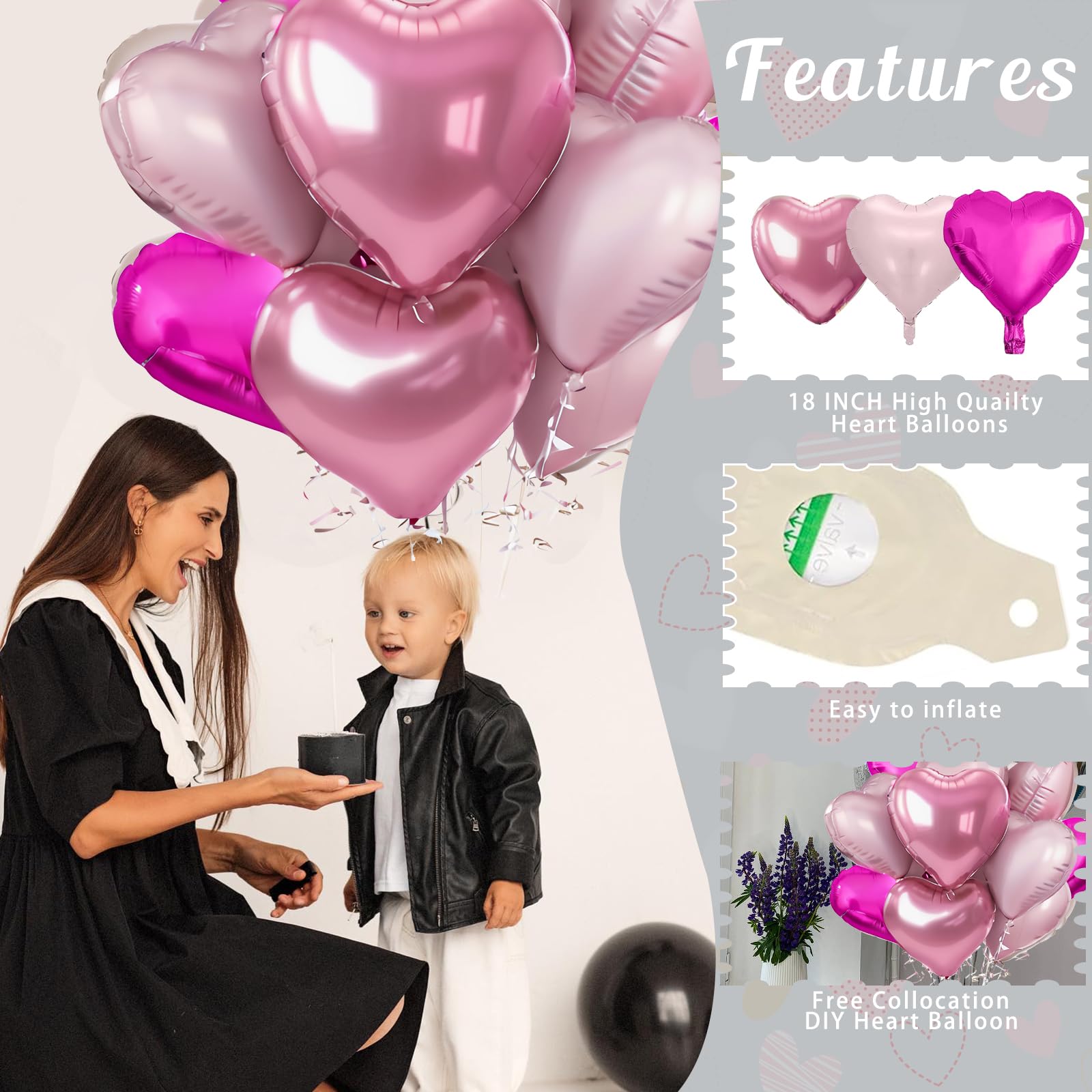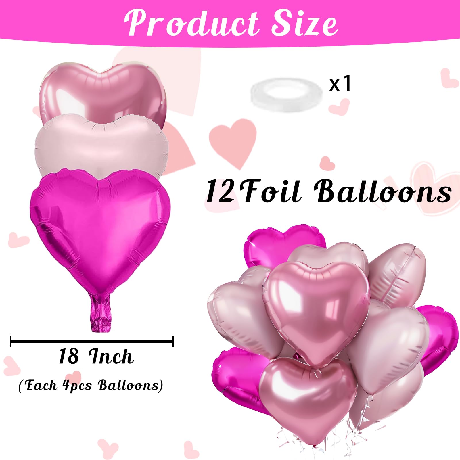 💖 Heart Balloons: The package includes 12 x 18 inch heart balloons with 1 ribbon. Foil heart-shaped balloons add a touch of fun and surprise to any party or holiday celebration. Their size is 18 inches, which is the perfect complement to your decoration needs, leaving unforgettable memories for your guests!