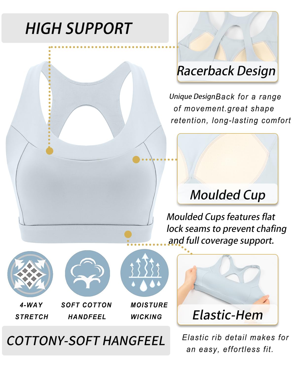VERSATILE SPORTS BRA:Perfect full supports sports bra for yoga,exercise,fitness,any type of workout,or everyday use.RUNNING GIRL running sports bras for women combine fashion,function and performance.This stylish high impact sports bra is great for wearing under workout shirts as well as non-workout wear, such as tank tops and light clothing.This sports bras for women high support is intended to provide high impact for great shape retention,long-lasting comfort.