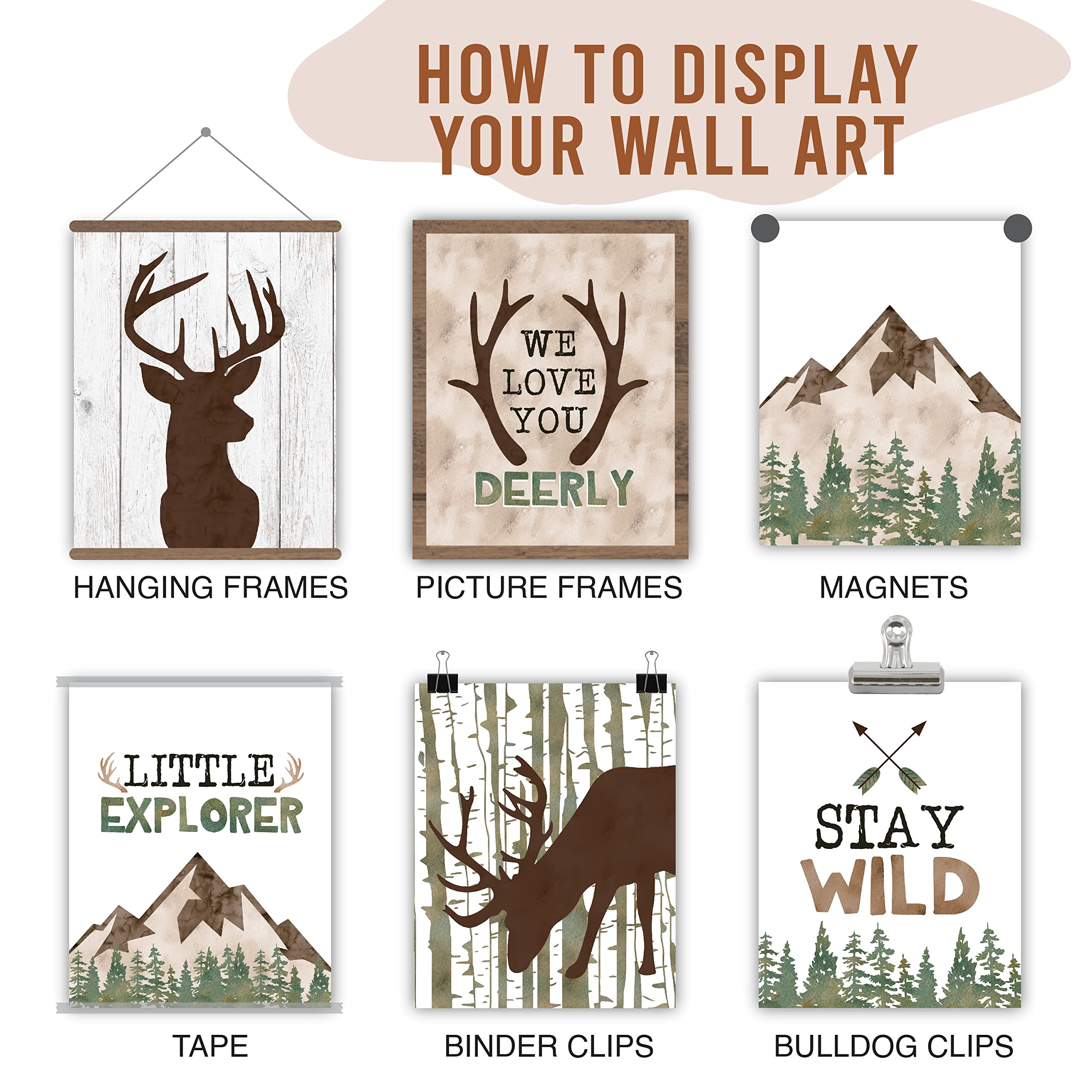 Ready To Frame: These six woodland decor for bedroom come unframed, so that you have the freedom to choose your own frame style that best matches your kid’s room; Use as deer wall decor or toddler room decor for kids