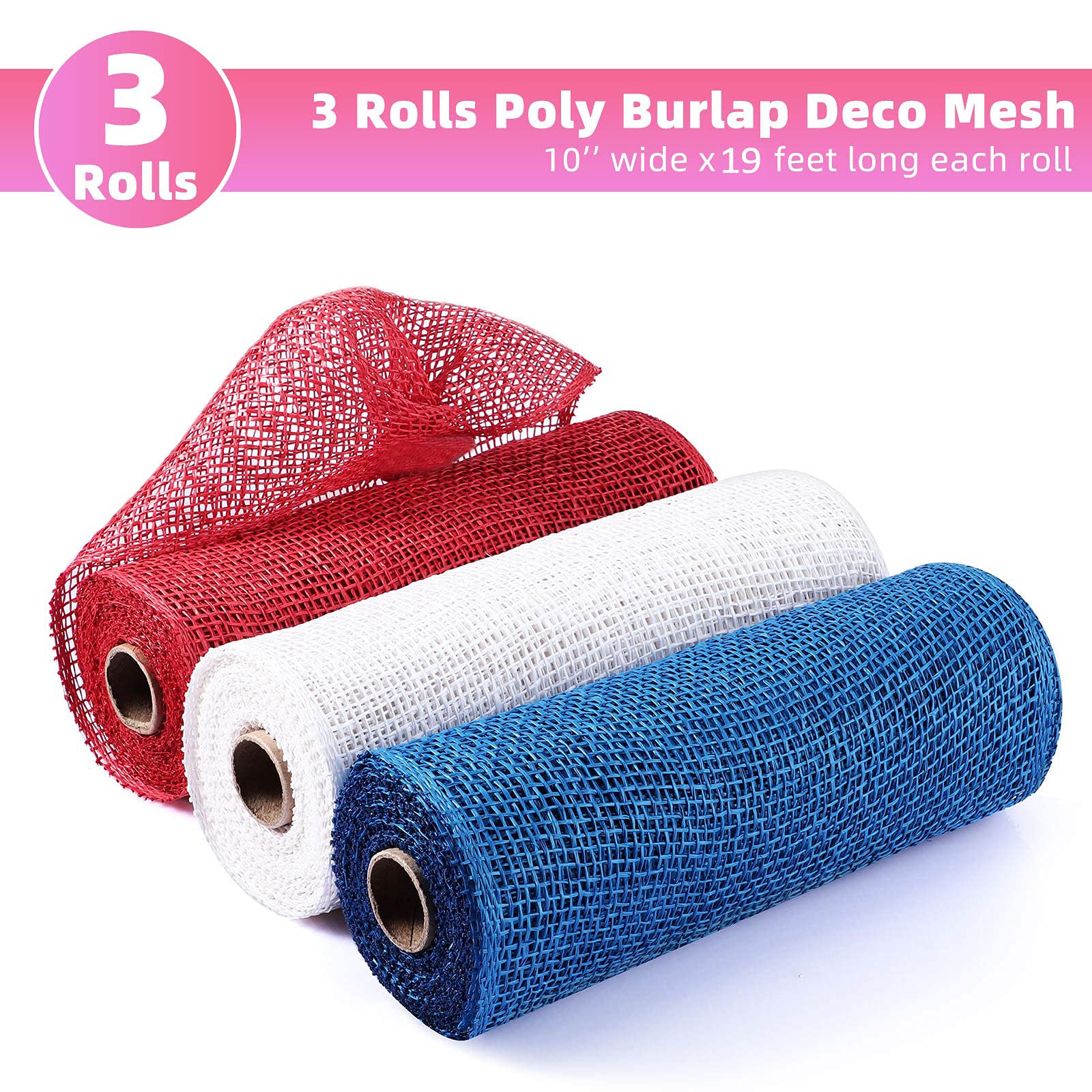 What you will receive: package includes 3 rolls of poly burlap deco mesh ribbons, the quantity can meet your multiple needs, you can also share with your family members or friends