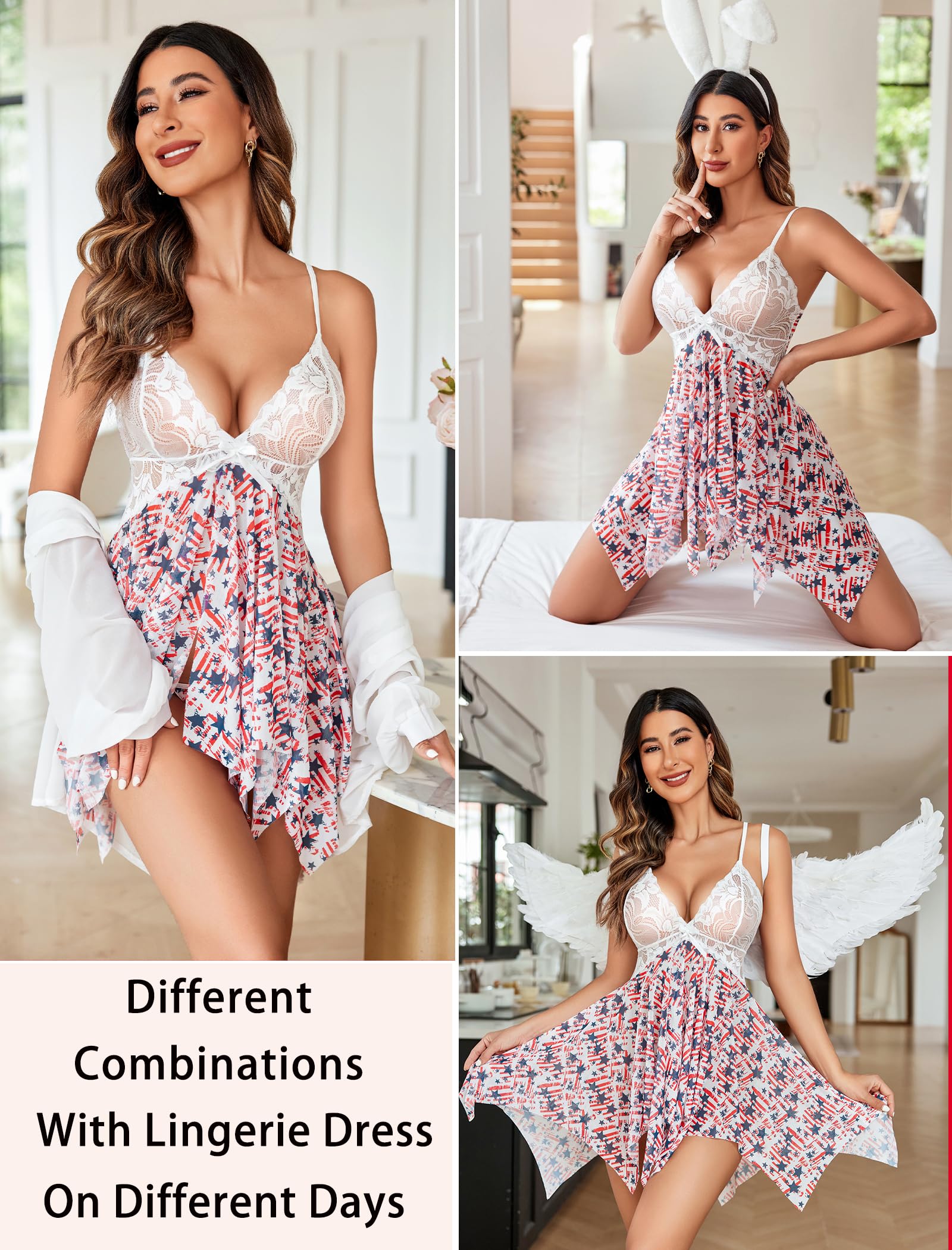 Avidlove lingerie for women/lace lingerie for women/womens lingerie sexy/baby doll lingerie for women which feature floral lace cups with cute bow decor, adjustable shoulder straps, flowing asymmetrical hem, and matched sheer G-string, sexy and elegant