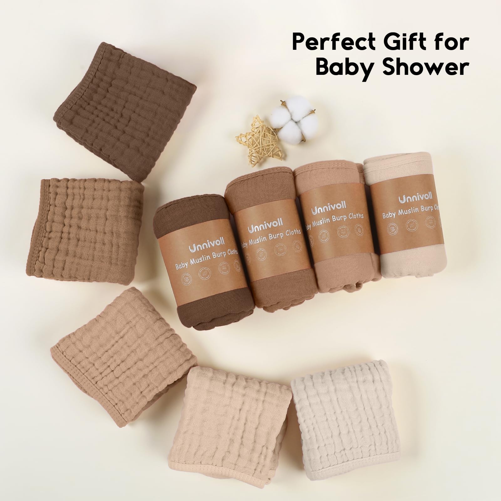 Safety Comes First: Made from 100% premium quality cotton,Unnivoll muslin burp cloths is certified to meet Consumer Product Safety Commission (CPSC) guidelines, eliminate all potential risks and provide a soft, breathable, cloud like comfort for your little one. The natural muslin is also suitable for all skin types including sensitive and delicate skin, perfectly use on the face, hand and body.