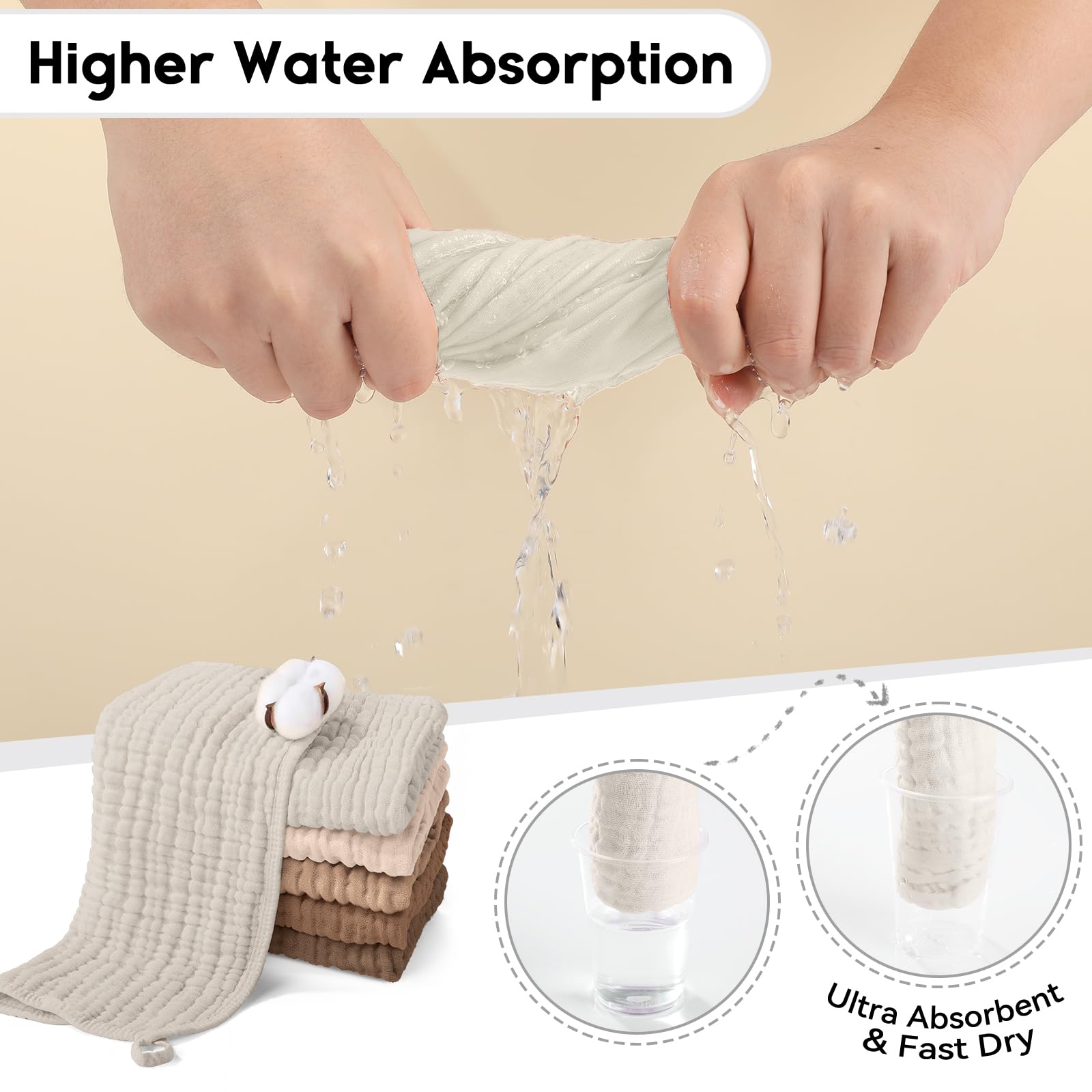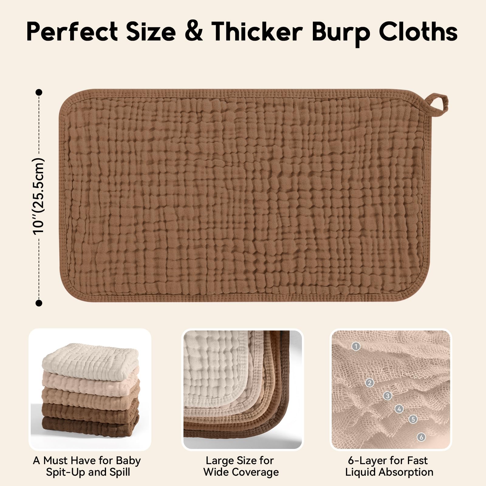 Excellent Absorbent: Featuring 6 layers of absorbent muslin and fluffy structure design, our burping cloths for babies provide maximum absorption with tendor touch, works well to protect your teething baby from all dribble and spit ups soaking their clothes. Large 20''X10'' size provides maximum coverage and extra layering adds durability, making them ideal for use in any season.