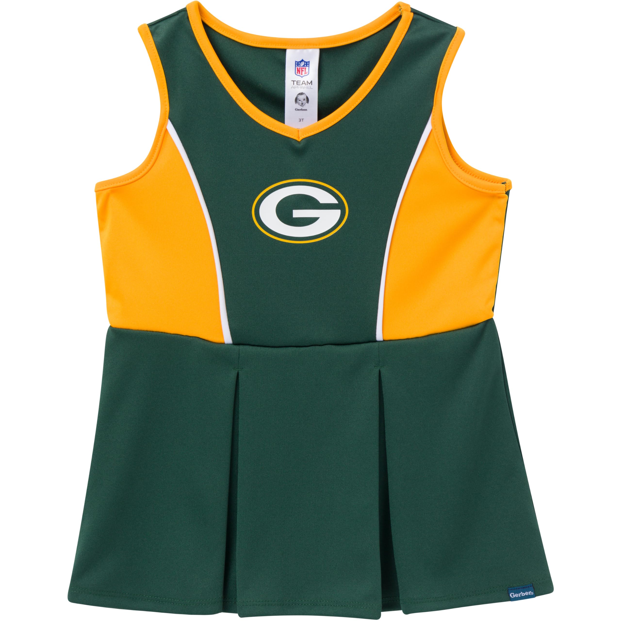 Official Packers Graphics – Features a large Green Bay Packers logo at the center of the dress.