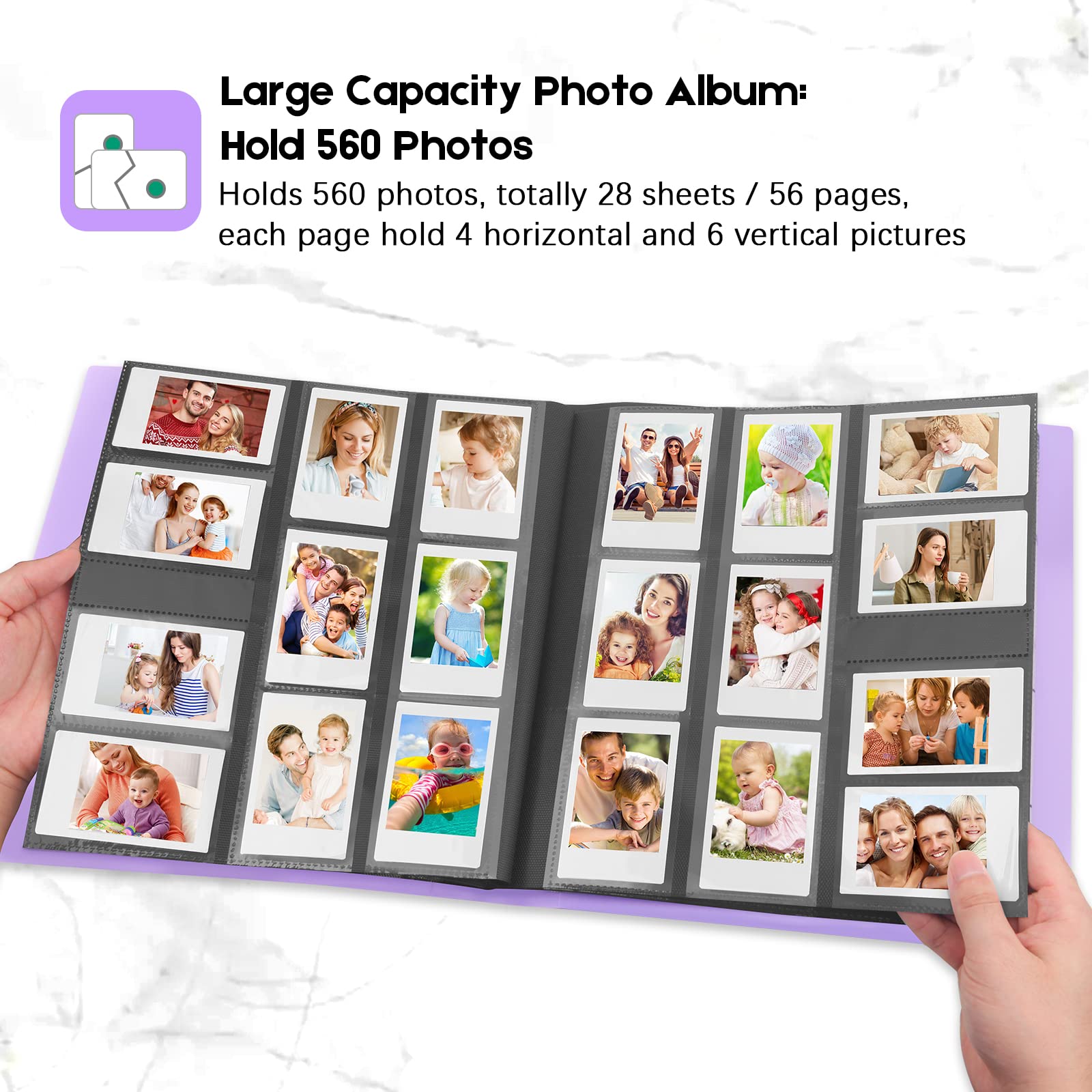 LARGE CAPACITY- STORE 560 PHOTOS Hold 560 films in total, for instax photo album contains 56 individual pages with 10 photos per page, opens like a book for easy viewing. A great way to keep your prized collection organized and in great condition.