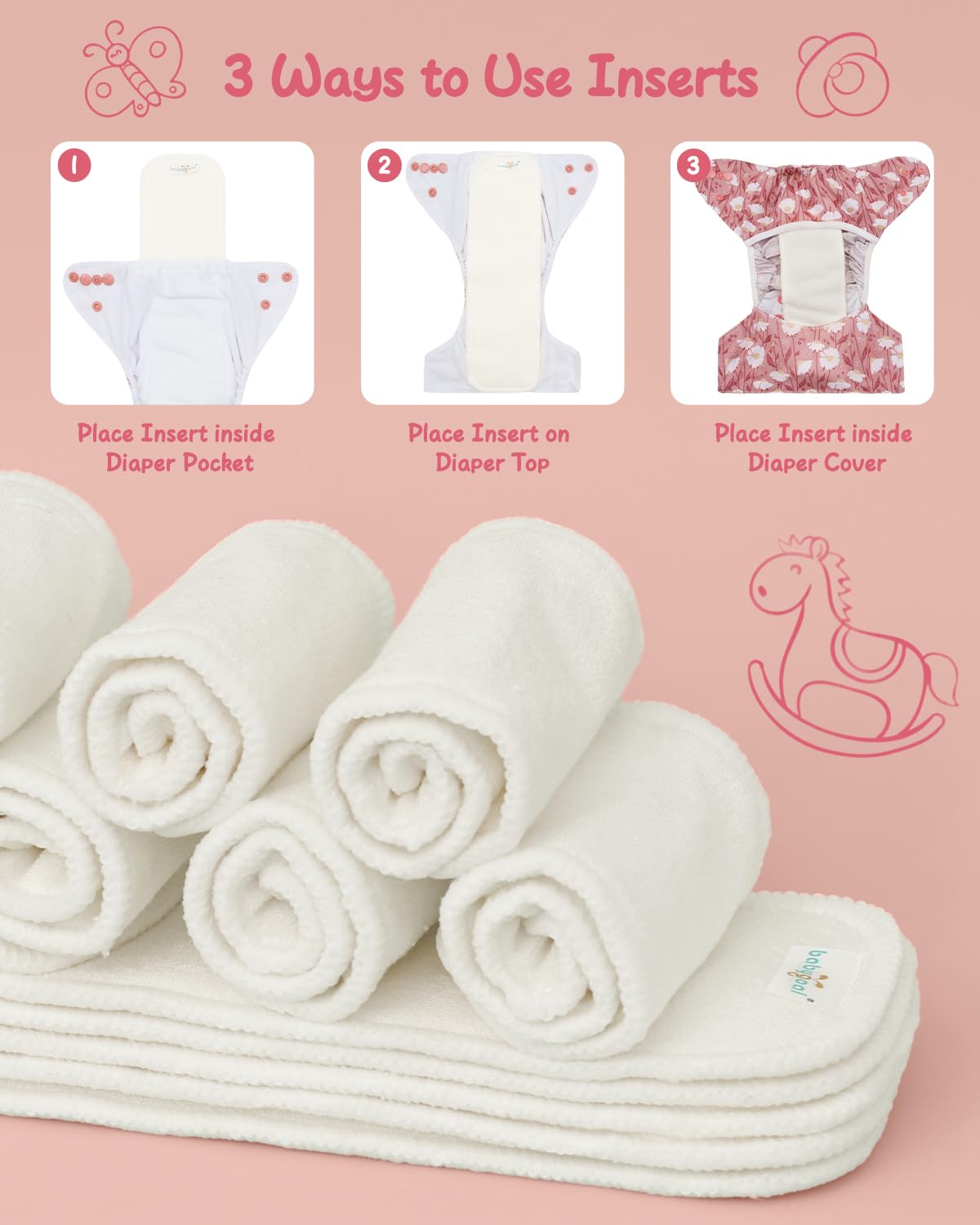 Economical & Reusable: Cloth diapers with inserts are less expensive than disposable diapers and reduces less waste. They fit for babygoal newborn pocket cloth diapers.
