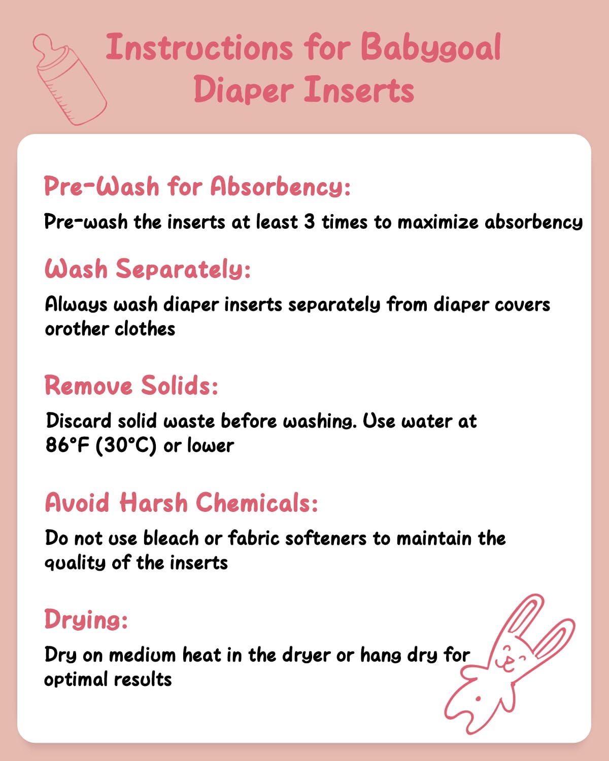Customer Satisfaction Guaranteed: Customer satisfaction is our first priority. Babygoal provide 3-month guarantee or new replacement if you feel unsatisfied with these diapers inserts.