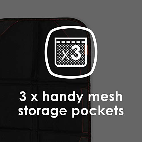 SAFE SECURE PROTECTION - Anti-slip fabric designed to grip surfaces on top and bottom panels to keep protector and car seats in place, PVC leather reinforced corners providing extra durability. Designed with 3 mesh storage pockets to keep organized