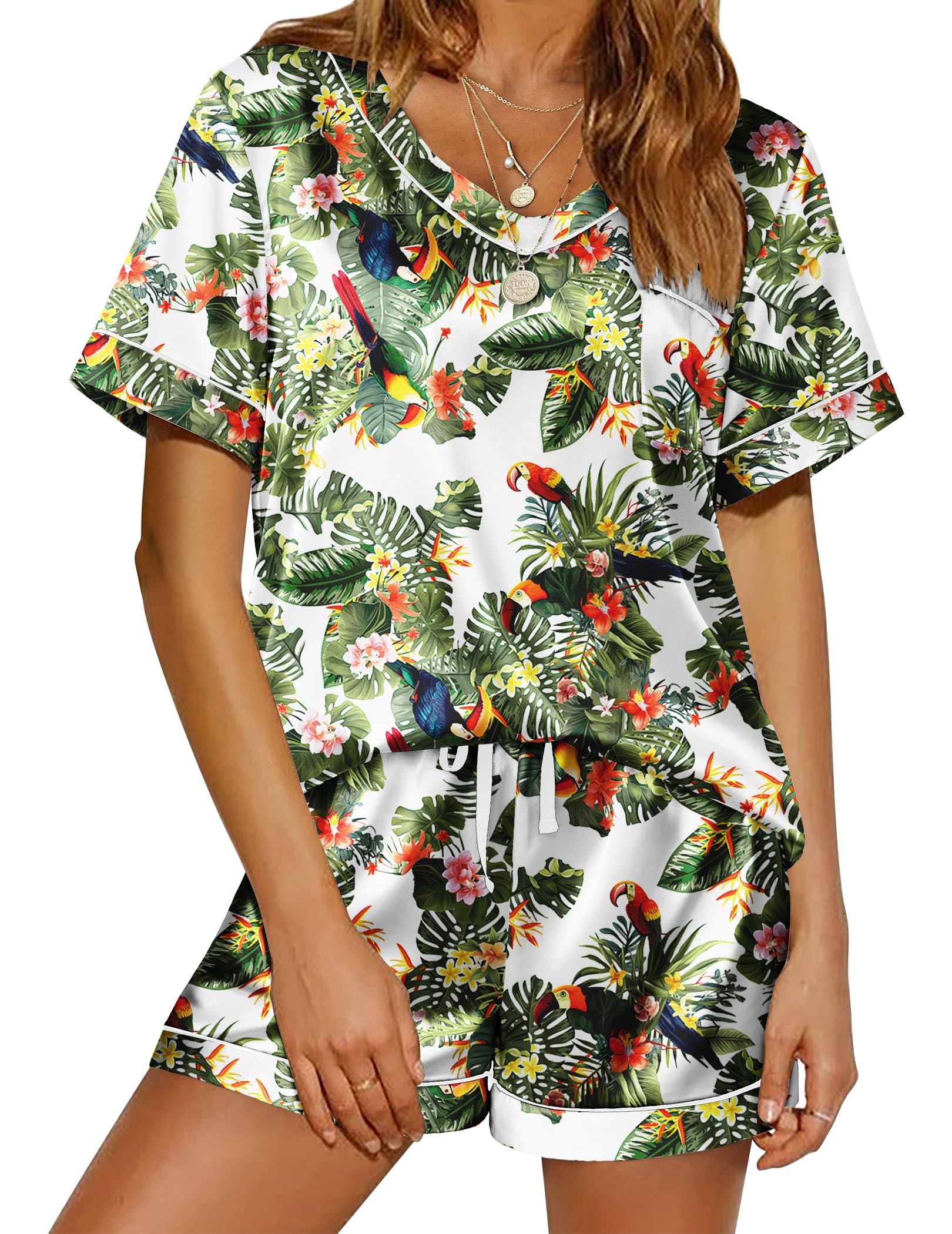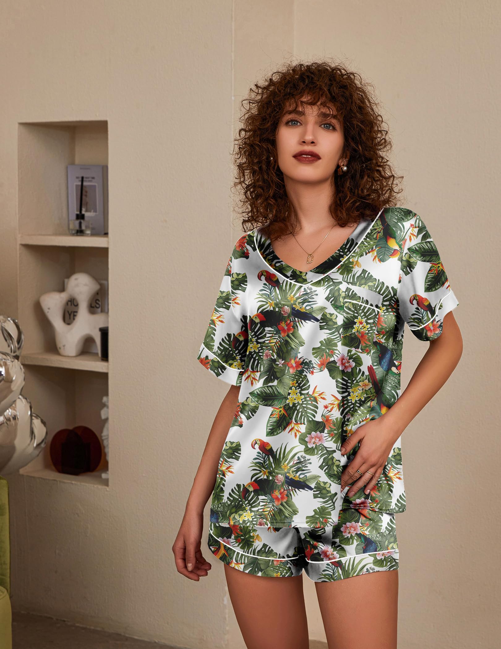 Short Sleeve Top: V neck, cute patterns and solid color, smooth satin top with chest pocket. The loose cut can show your body curve while giving you a burden-free wearing experience
