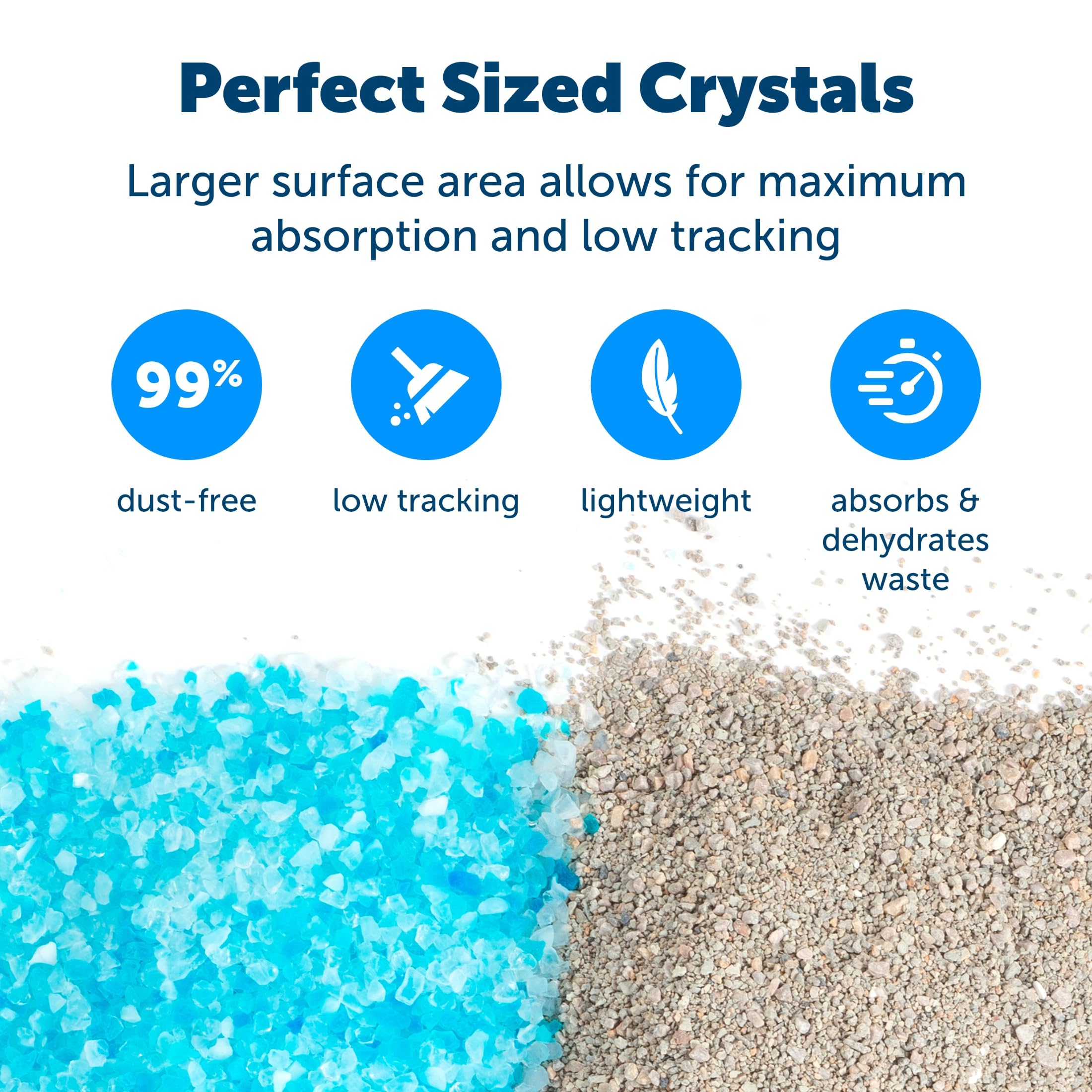 Quick Drying: PetSafe ScoopFree Premium Crystal Cat Litter is made with ultra-absorbent silica that absorbs urine and dries solid waste to quickly remove odors 5x faster than clumping clay litter