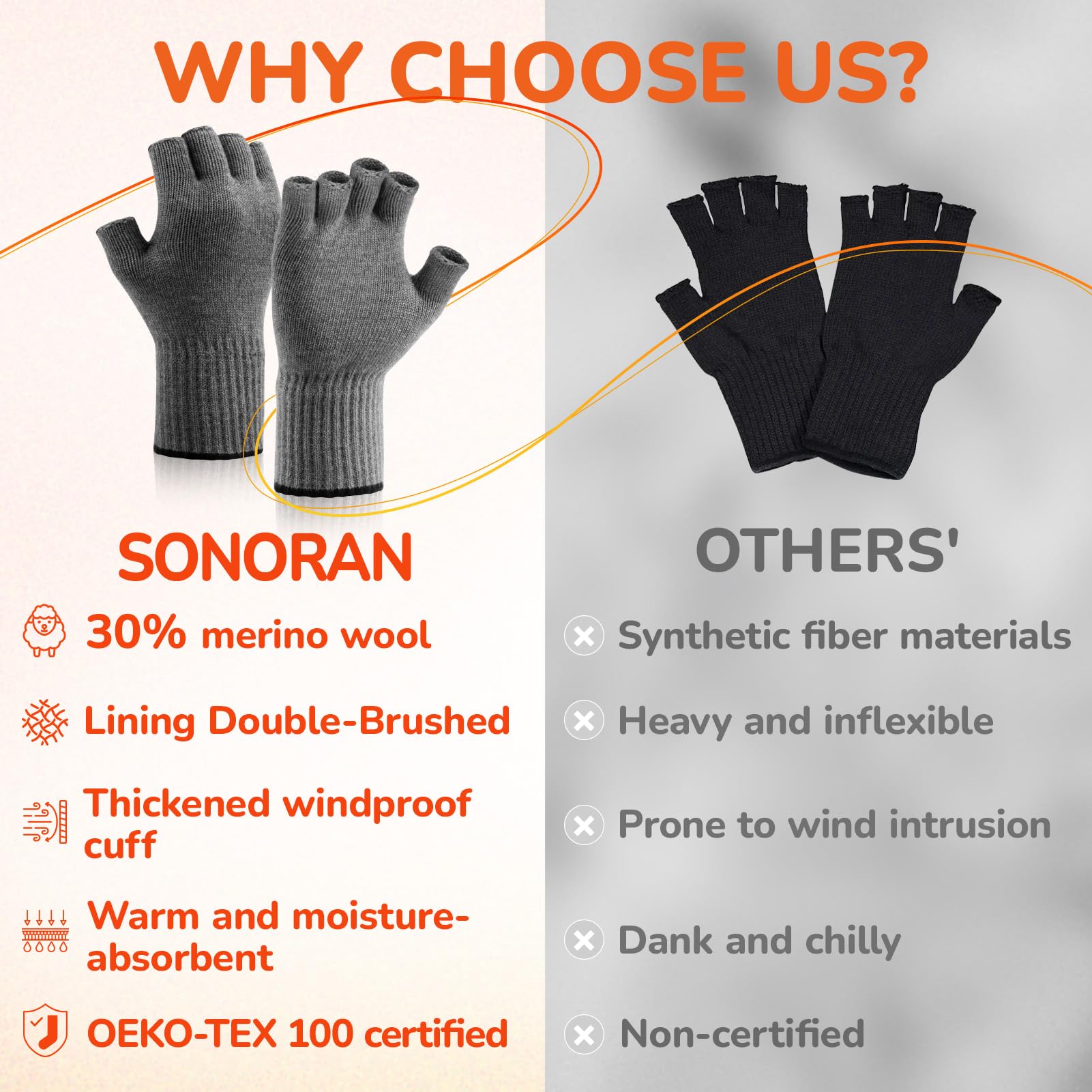 Fingerless Design: Our half-finger gloves offer superb flexibility for unrestricted finger movement, allowing for precise operations such as typing, using touchscreen devices, fishing, or handling small tools. The seamless knit construction makes them easy to layer.