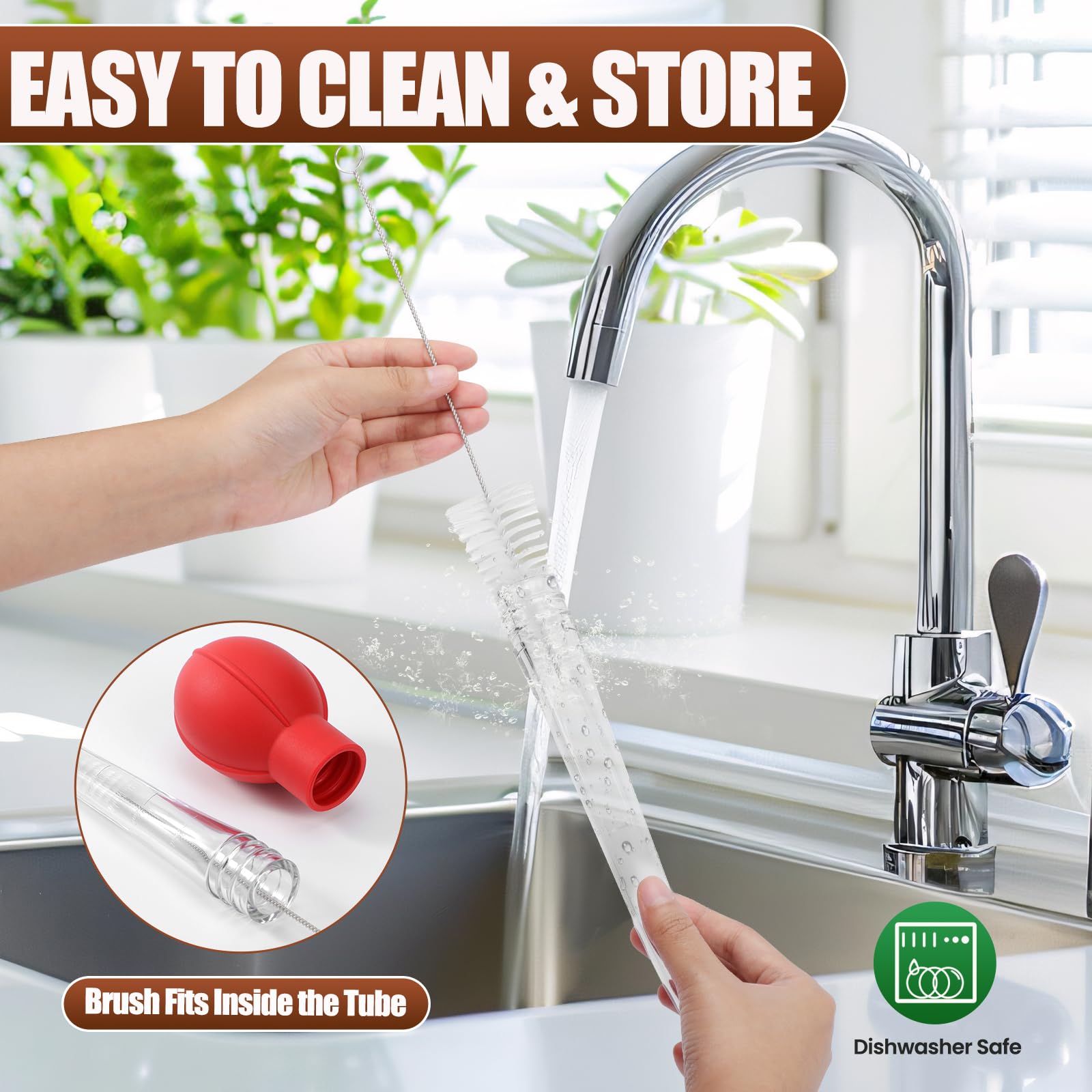 EASY TO CLEAN: The OLESBUR Turkey Baster includes a convenient cleaning brush, ensuring thorough cleaning after each use. For added convenience, the brush fits perfectly inside the suction tube for easy storage. Our turkey injector syringe is also completely dishwasher safe.
