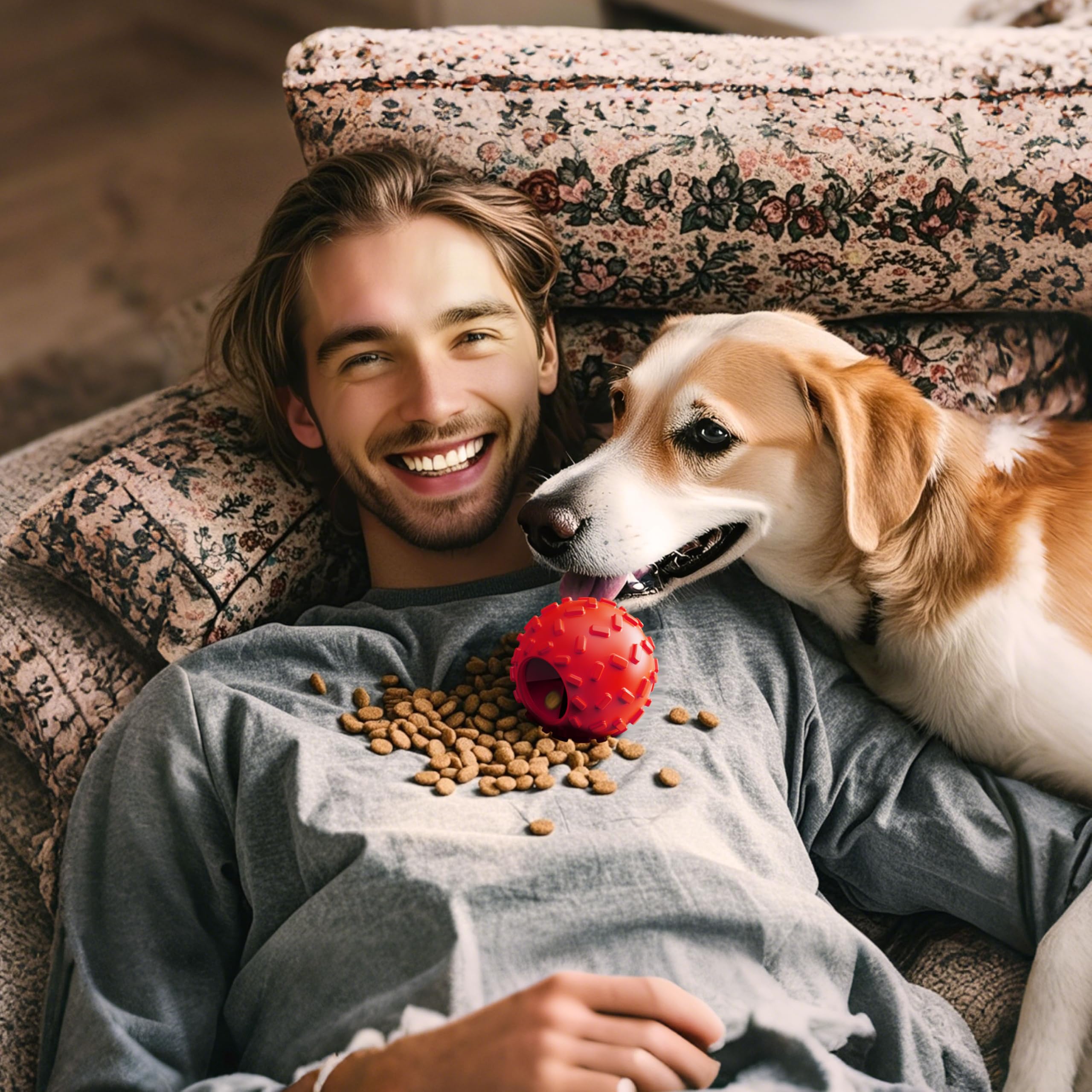 [Interactive Dog Toy for Boredom – Treat Dispensing & Mental Stimulation]This interactive dog ball is designed to prevent boredom while stimulating your dog’s mind. Made from eco-friendly natural rubber, it's safe, durable, and easy to clean. Simply add treats inside the ball to provide 20-40 minutes of fun, keeping your dog occupied and mentally engaged. It’s perfect for all dog sizes and works as a great tool for anxiety relief, reducing destructive behaviors caused by stress or loneliness—an ideal choice for dog toys to keep them busy and mental stimulation dog toys.
