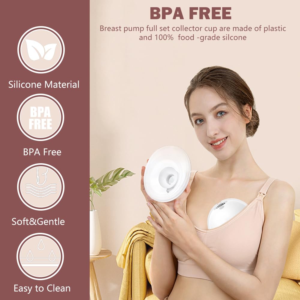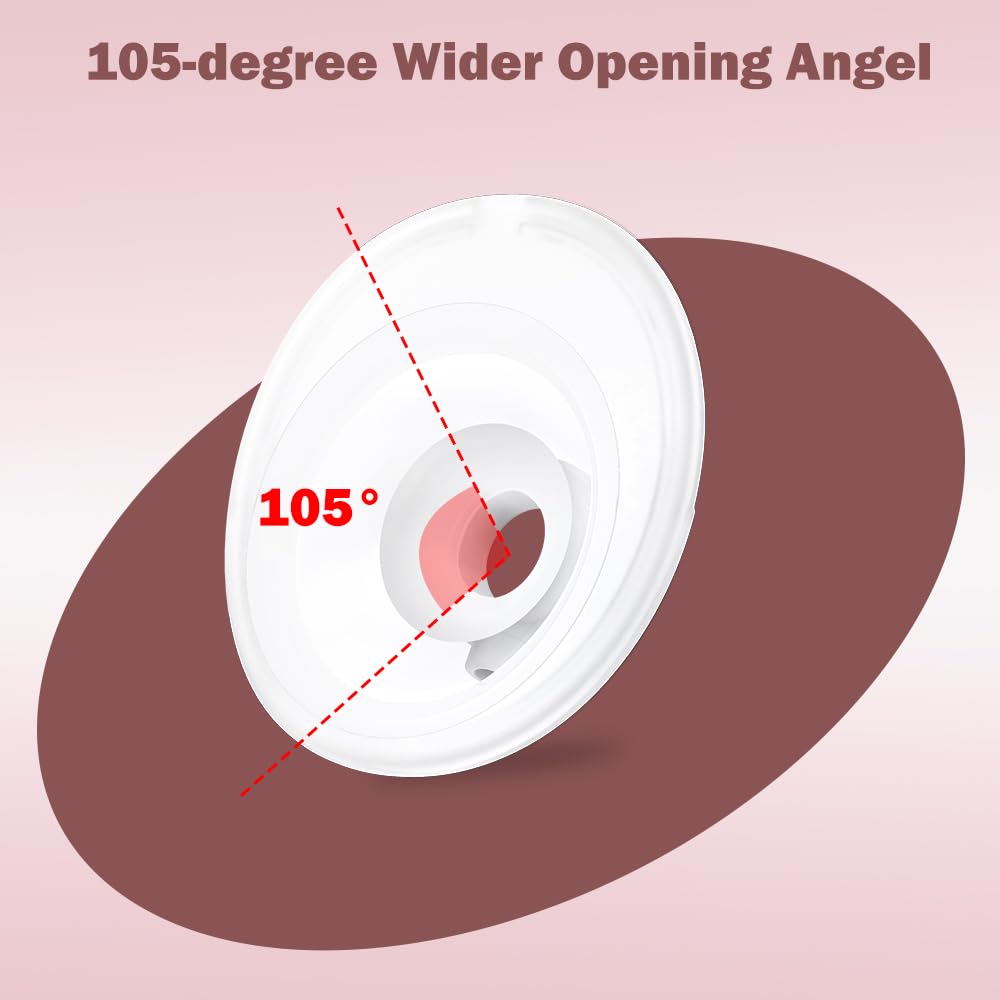 【105-degree Wider Opening Angel 】:The breast shield designing with 105 degree wide angle opening , more suitable for mothers with large breasts or flatter contour breasts. Larger cup size for more covered area of breasts during pumping and more comfortable