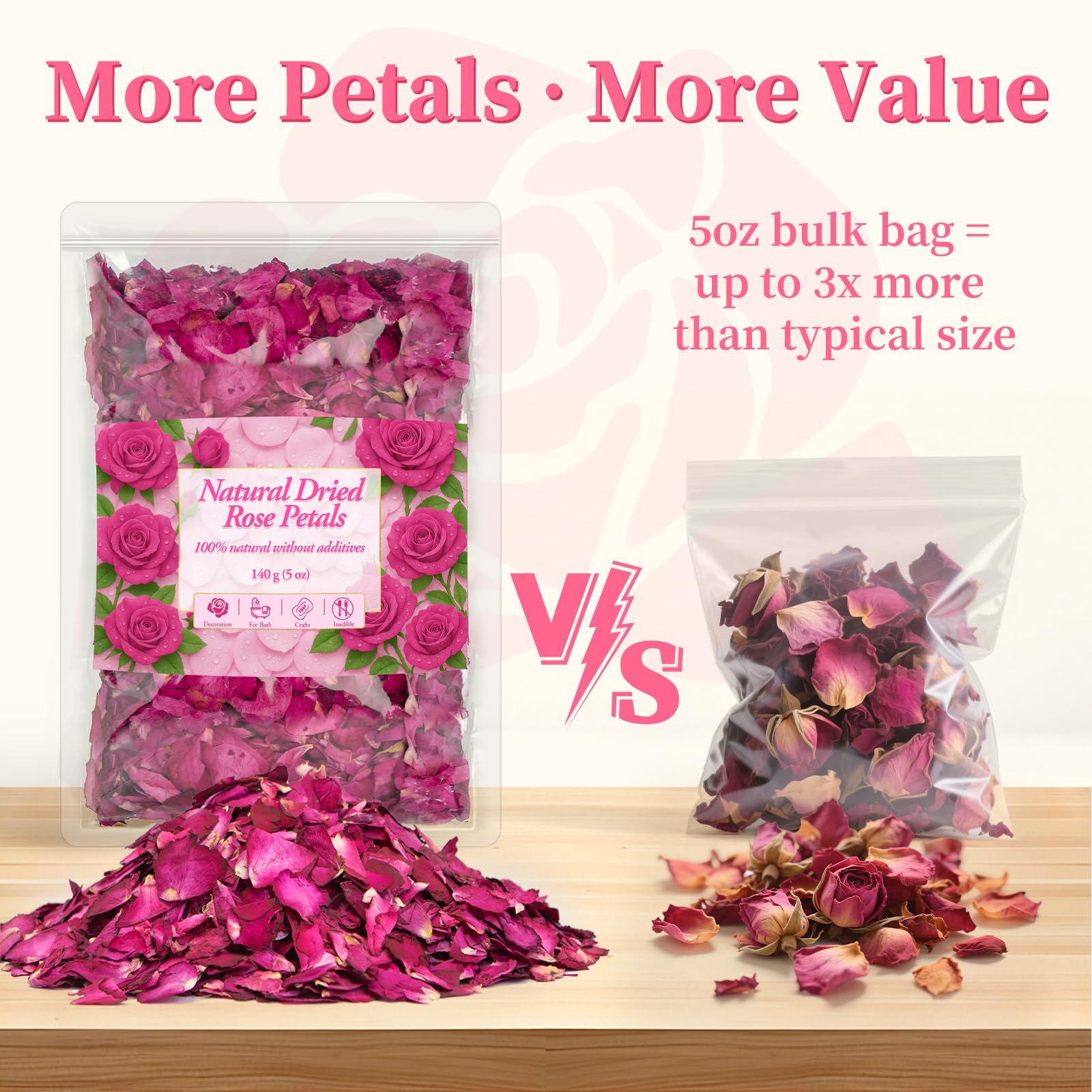 Elegant Packaging: Comes in a vacuum-packed inner bag with resealable outer layer – moisture-proof and reusable. Keep your petals dry, aromatic and clean for every occasion, from daily spa rituals to Valentine’s Day surprises