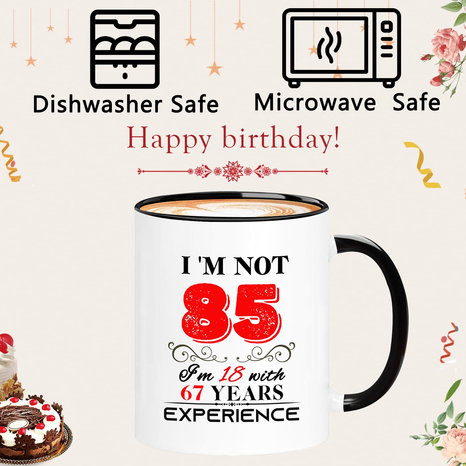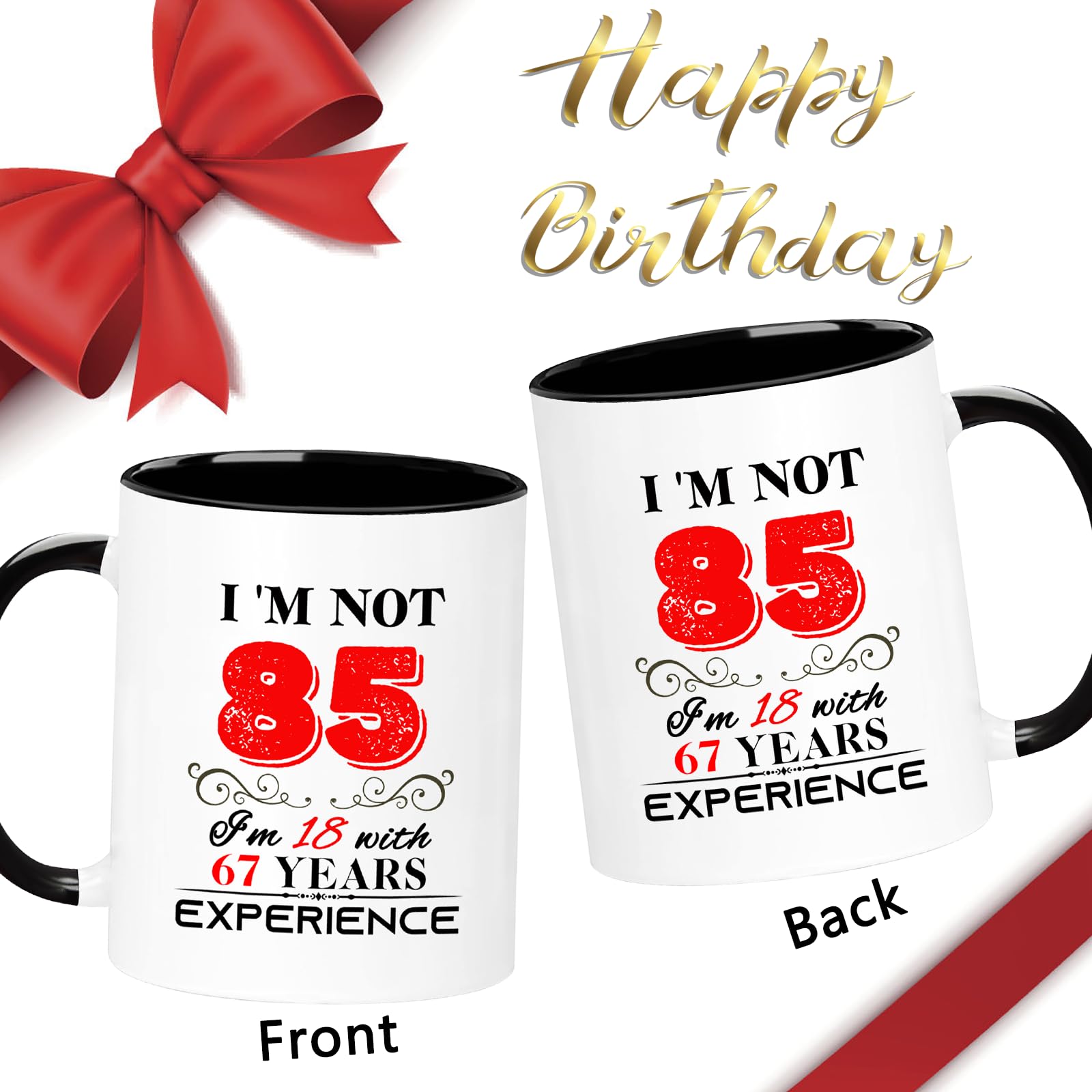 【Birthday Gift】: This funny "I'm not 85, I'm 18 with 67 years experience" Mug is the perfect birthday gift for a 85 year women men! Give it to your mom, dad, papa, mama, brother, sister, husband, wife, aunt, uncle, cousin, son, daughter, boyfriend, girlfriend, boss, coworkers, bestie, granddaughter, or your best friend for her he birthday.