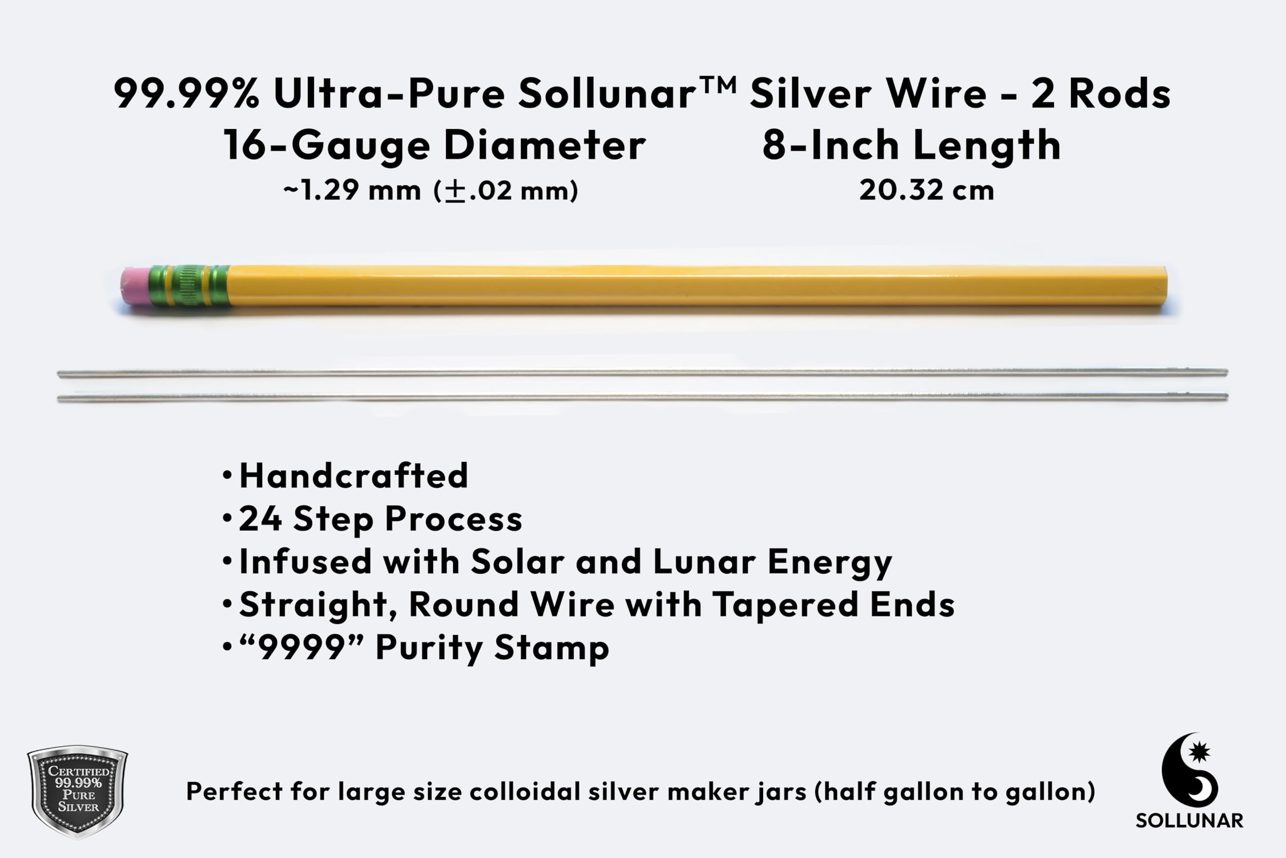 Crafted for Colloidal Silver & Alchemical Use: Designed for colloidal silver enthusiasts, holistic practitioners, and alchemists, Sollunar's pure silver wire rods provide the highest-grade silver for creating the purest colloidal silver solutions or conducting metallurgical and energy work.