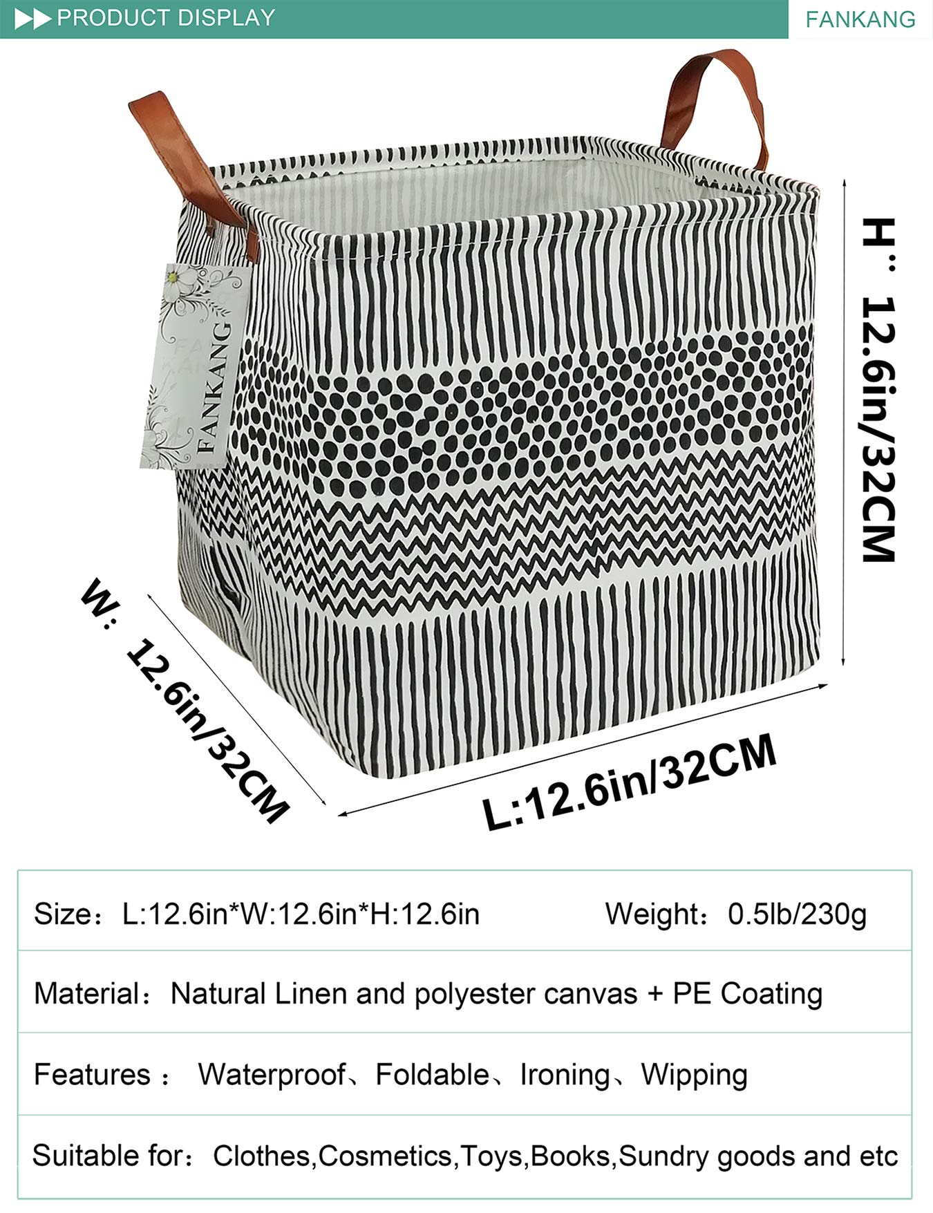 This storage bag suitable for adult, teens, kids; suitable for toys, books, clothes and other stuff, suitable for home and school. Why choose our large storage basket? -We selected high-quality polyester canvas + flax + PE environmental protection waterproof coating - Double side handles for easy toting. - Collapsible design for compact, convenient storage. - Cute lovely animal pattern design. - Multiple function, suitable for any place. Features: - Perfect organizer for play rooms, allowing for the storage of toys bin, books, blocks, stuffed animals, toys with multiple pieces, train sets, or board games. -reading materials, as well as in the bathroom for towels, or as a laundry hamper.