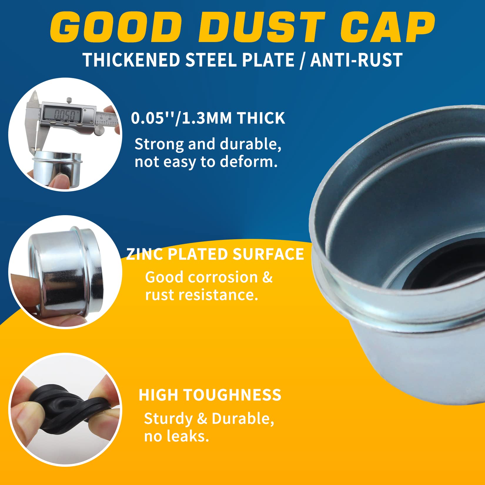 【NOTE】- In order to install firmly, the axle dust cap is slightly larger by design. You need to knock it into place using a wood block and hammer or rubber mallet, to prevent denting the cap while installing.