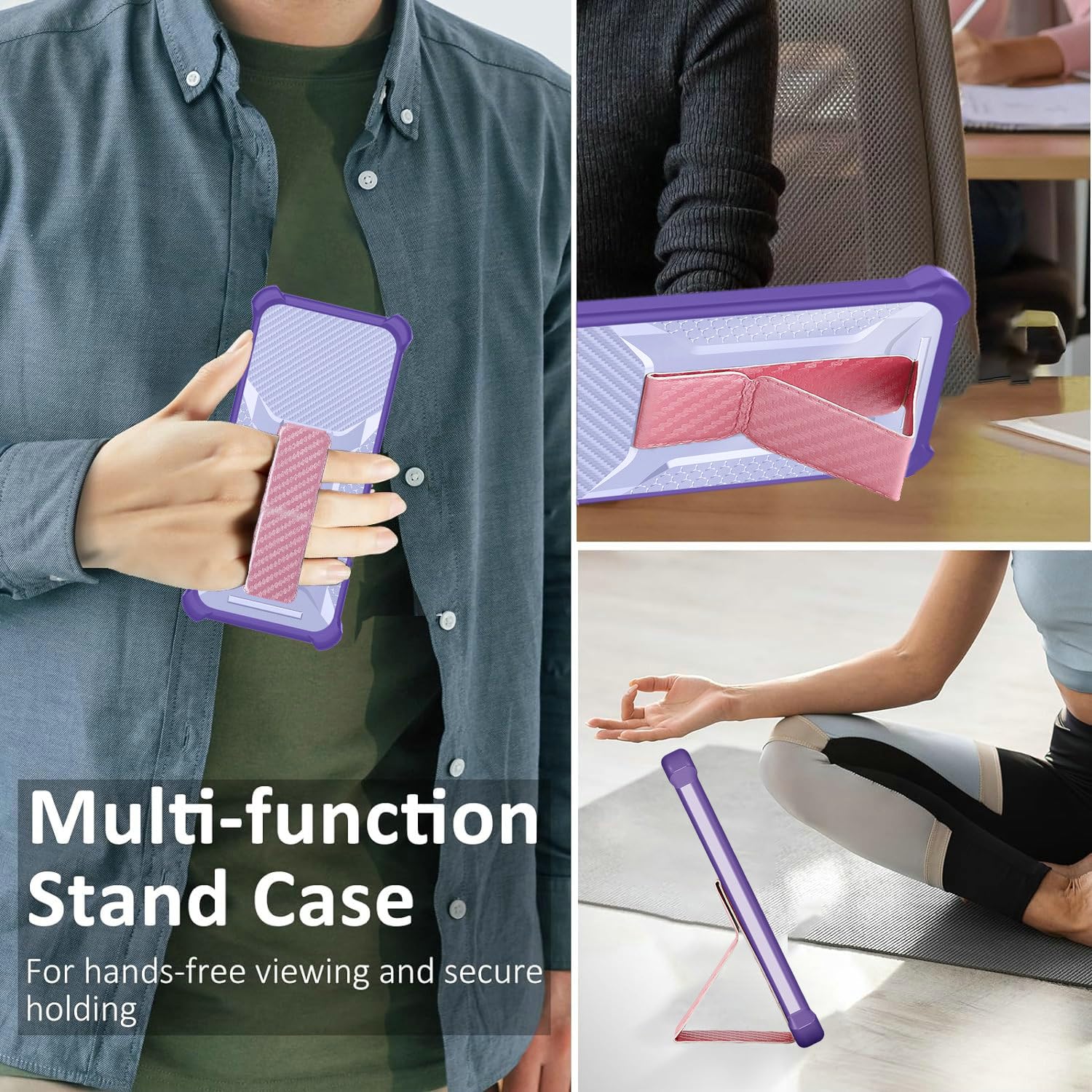 Case Compatible for Wiko Y82 Phone Case Cover [with Tempered Glass Screen Protector] Hybrid Case [Folding Support Magnetic] [Frosted anti-fingerprint] Purple