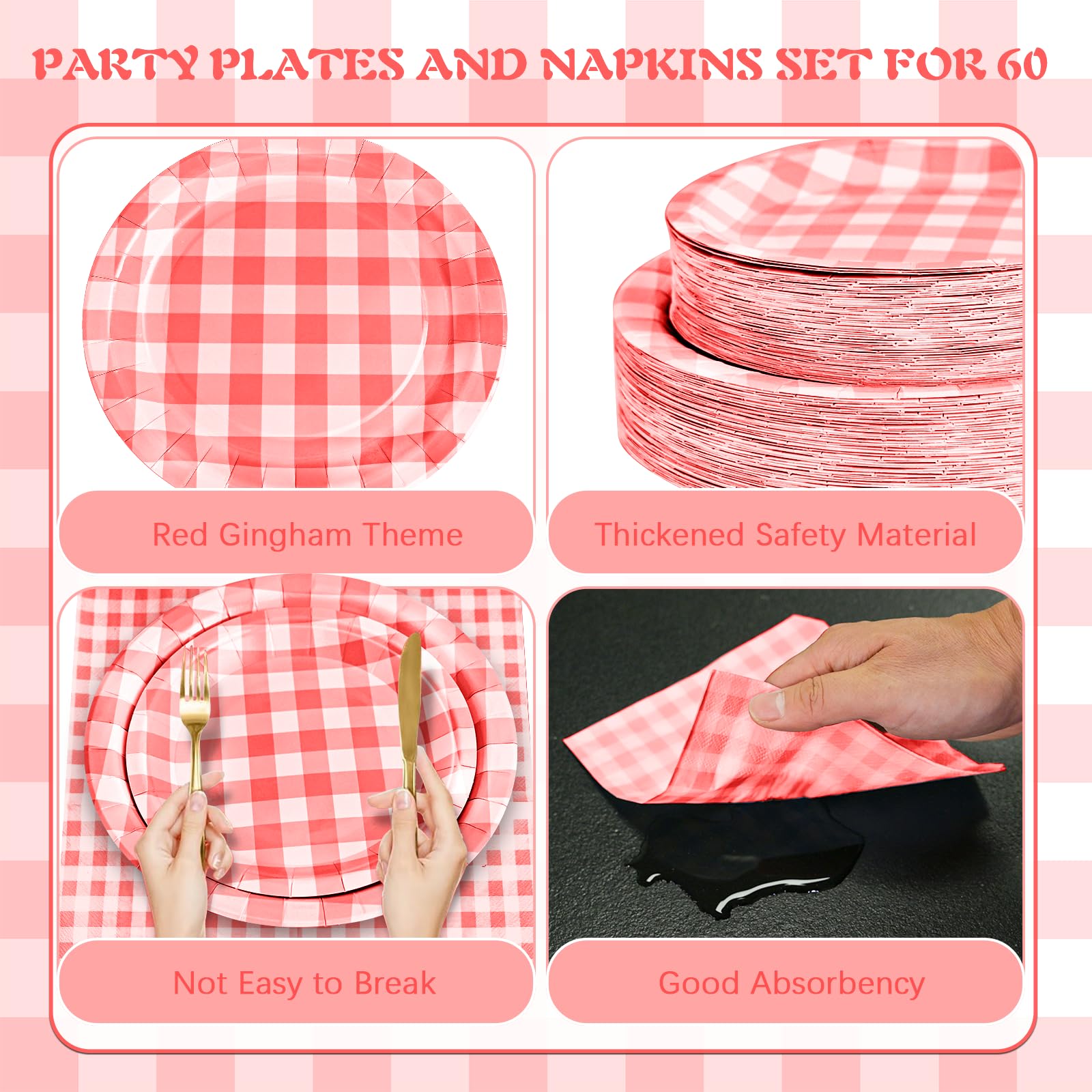 180 Pcs Plates and Napkins Set: This set includes 60 dinner plates (9.1"), 60 dessert plates (7.1"), and 60 napkins, perfect for serving up to 60 guests. From casual dinners to large celebrations, this all-in-one solution ensures a stylish, hassle-free dining experience every time