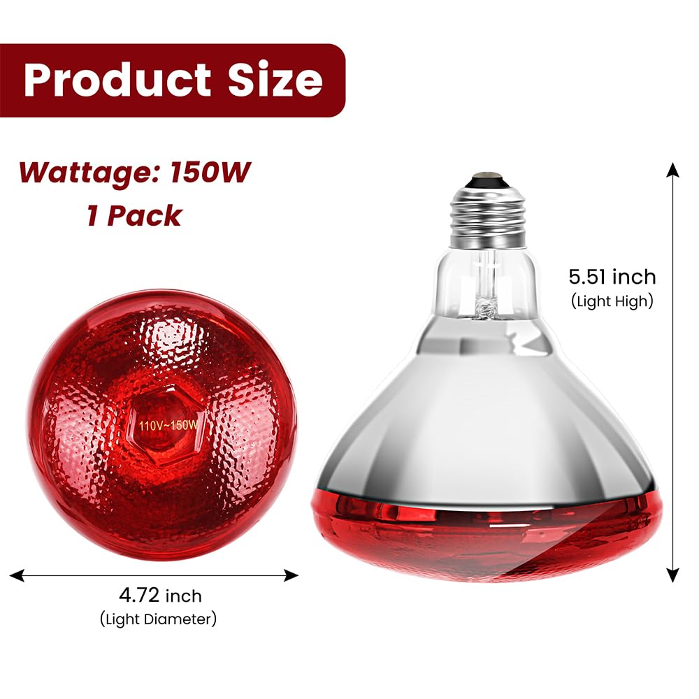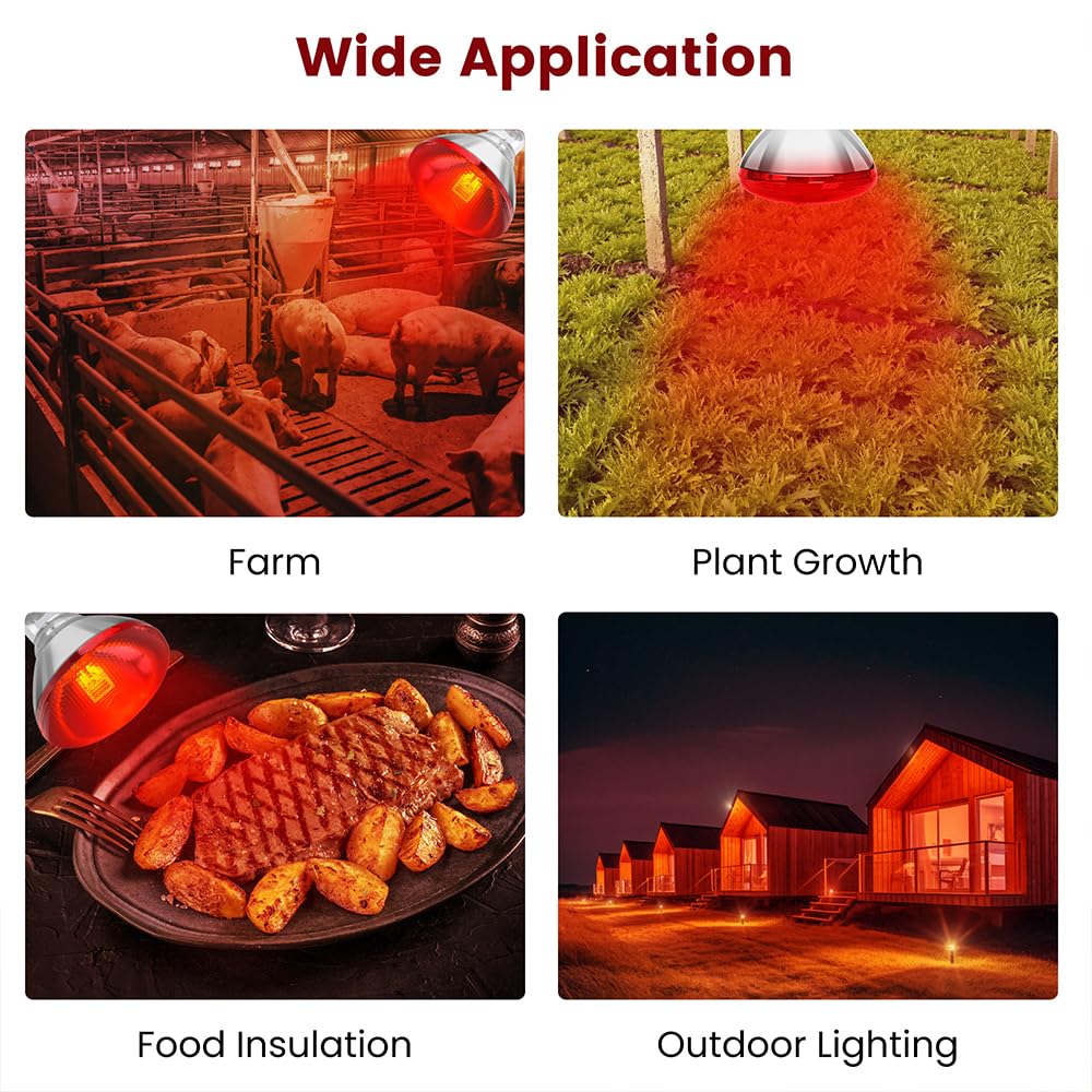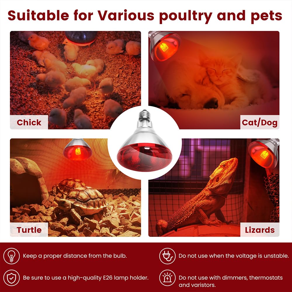 【Wide Applications & Quality After-sales】: This infrared heat lamp from DaToo is not only suitable for all kinds of poultry, pets and small mammals, but also provides warm care for reptiles and amphibians, as well as promotes the vigorous growth of plants, and plays an excellent role in catering and home health care. Fits standard E26 bases and is easy to install. If you have any questions, please feel free to contact DaToo, customer satisfaction is our constant pursuit.