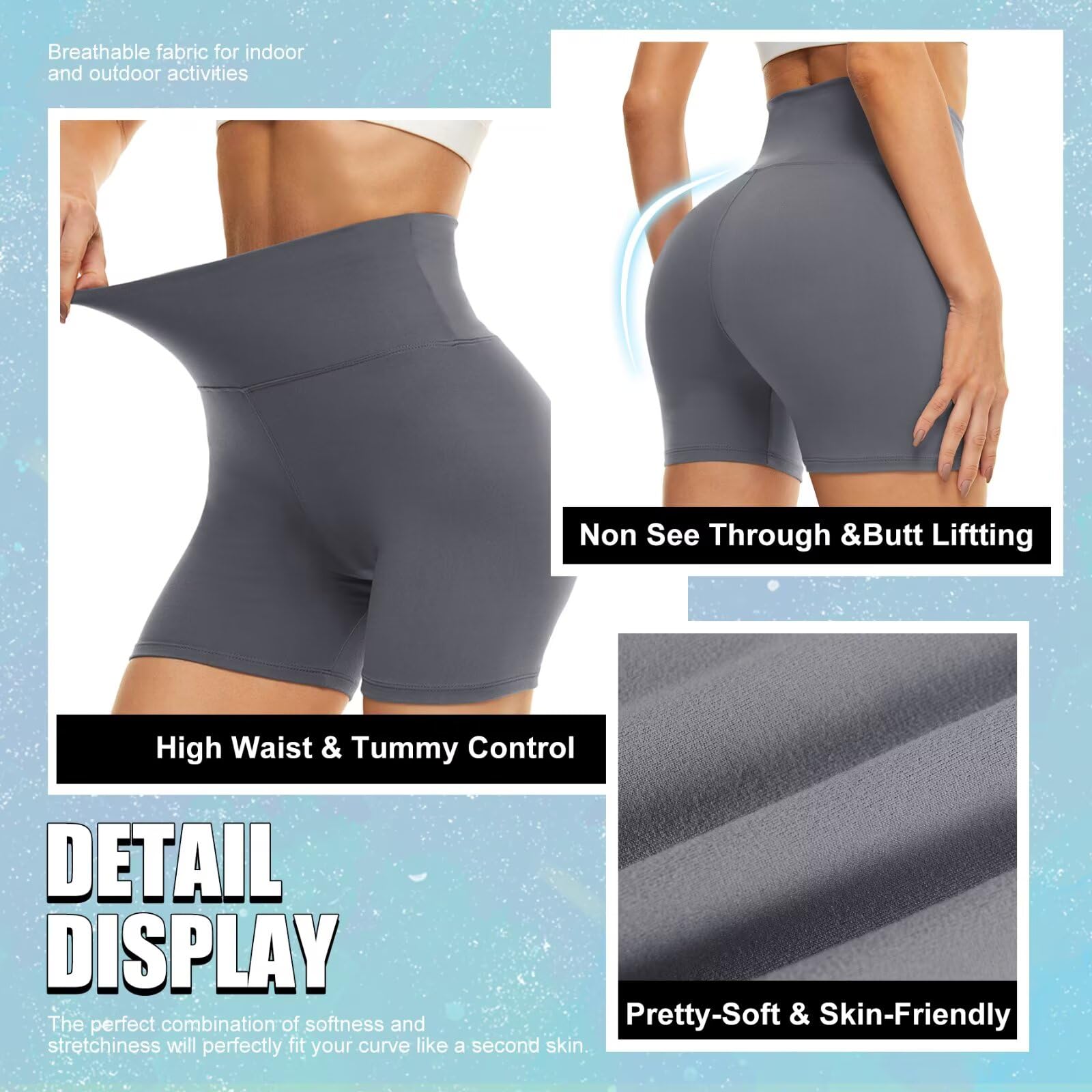 No Pilling, No Snagging, Sturdy for Months:Use updated fabric, so our shorts can be worn all year round. The breathable, moisture-wicking material will keep you cool and dry during even the toughest of workouts. The 4 way stretch fabric ensures a snug fit that moves with you. Whether you're hitting the gym or practicing yoga, our biker shorts will be your go-to choice.