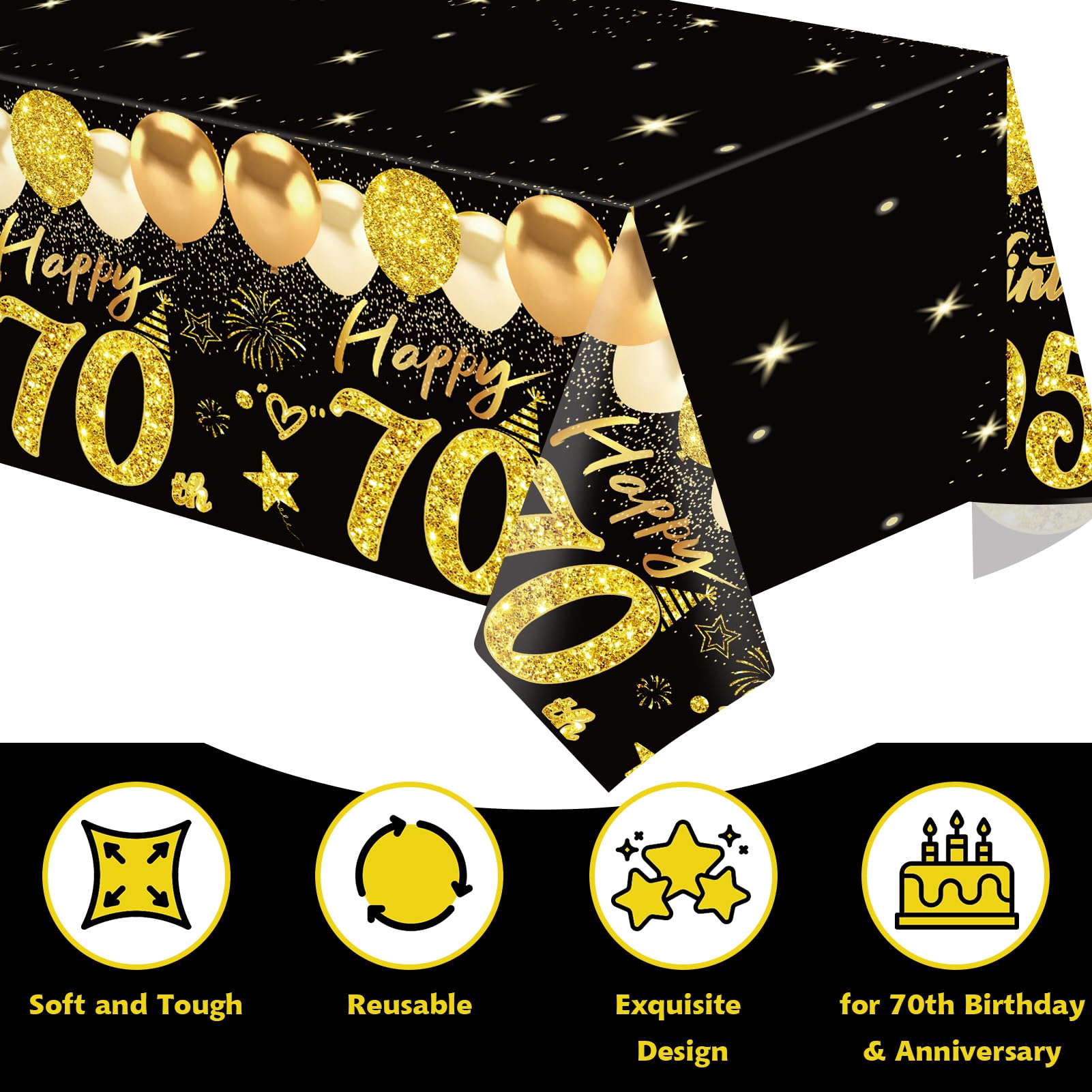 You Will Get: 2pcs black gold 70th birthday table clothes (108 x 54 inch), fit most rectangular tables and a few round table