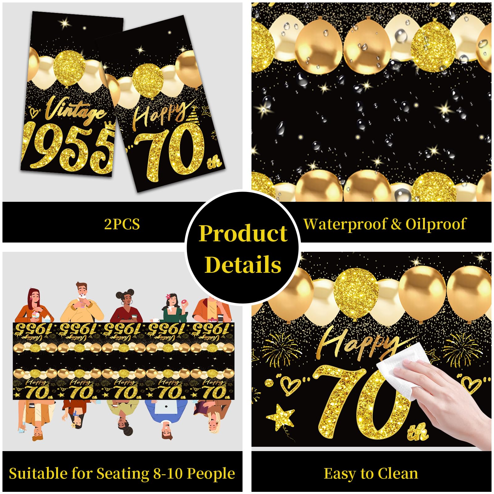 Exquisite Design: Uiorgui 70th birthday tablecloths for men, printed with "Vintage 1955" and "Happy 70th", are beautiful and elegant; with rich party elements such as balloons, stars, hearts, crowns and fireworks, these 1955 birthday tablecloths will add elegant and festive atmosphere