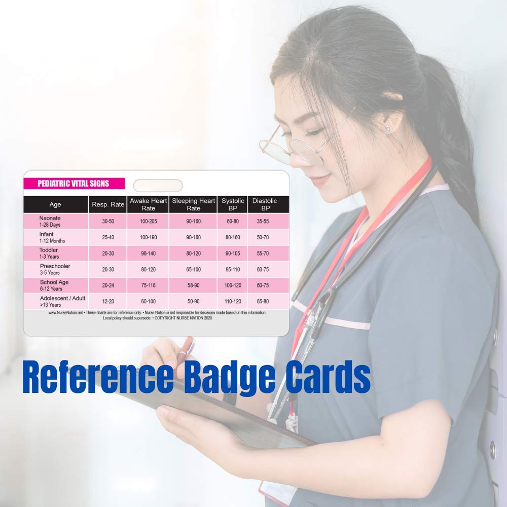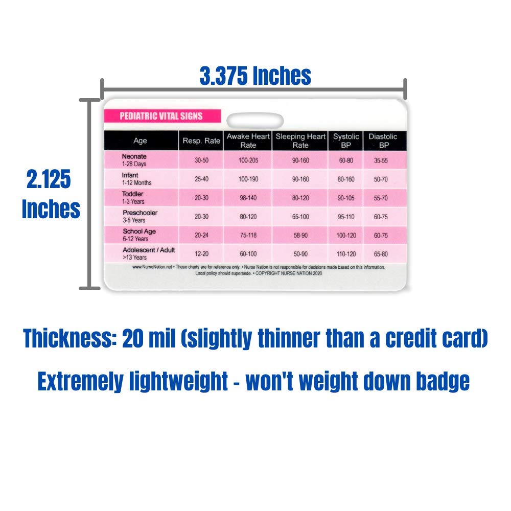 EASY TO READ REFERENCE - This nursing reference card is packed with the pediatric vital sign information needed for quick reference and will be an excellent addition to your RN Badge