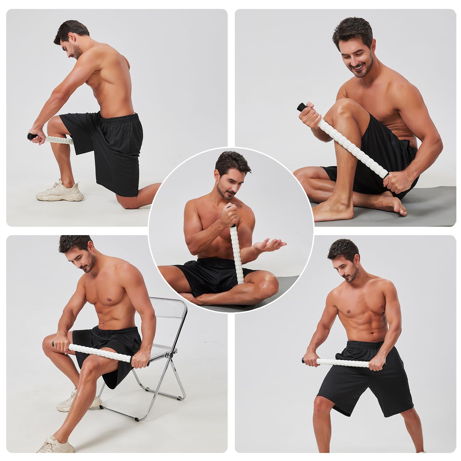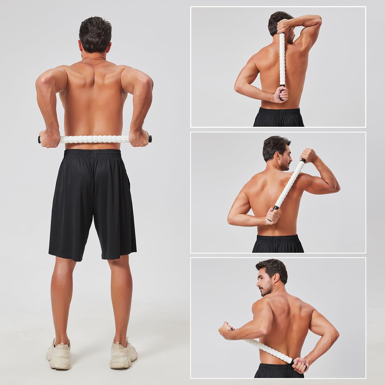【🩸24" Blood Circulation Booster Massage Stick】Features a single-core steel shaft paired with 15 precision plastic rollers, covering large muscle areas across the body. The reinforced central steel core ensures stability during use, while the pressure distribution design stimulates blood circulation. Ergonomic split handles allow for flexible two-handed manipulation – a clinically validated myofascial relief solution.