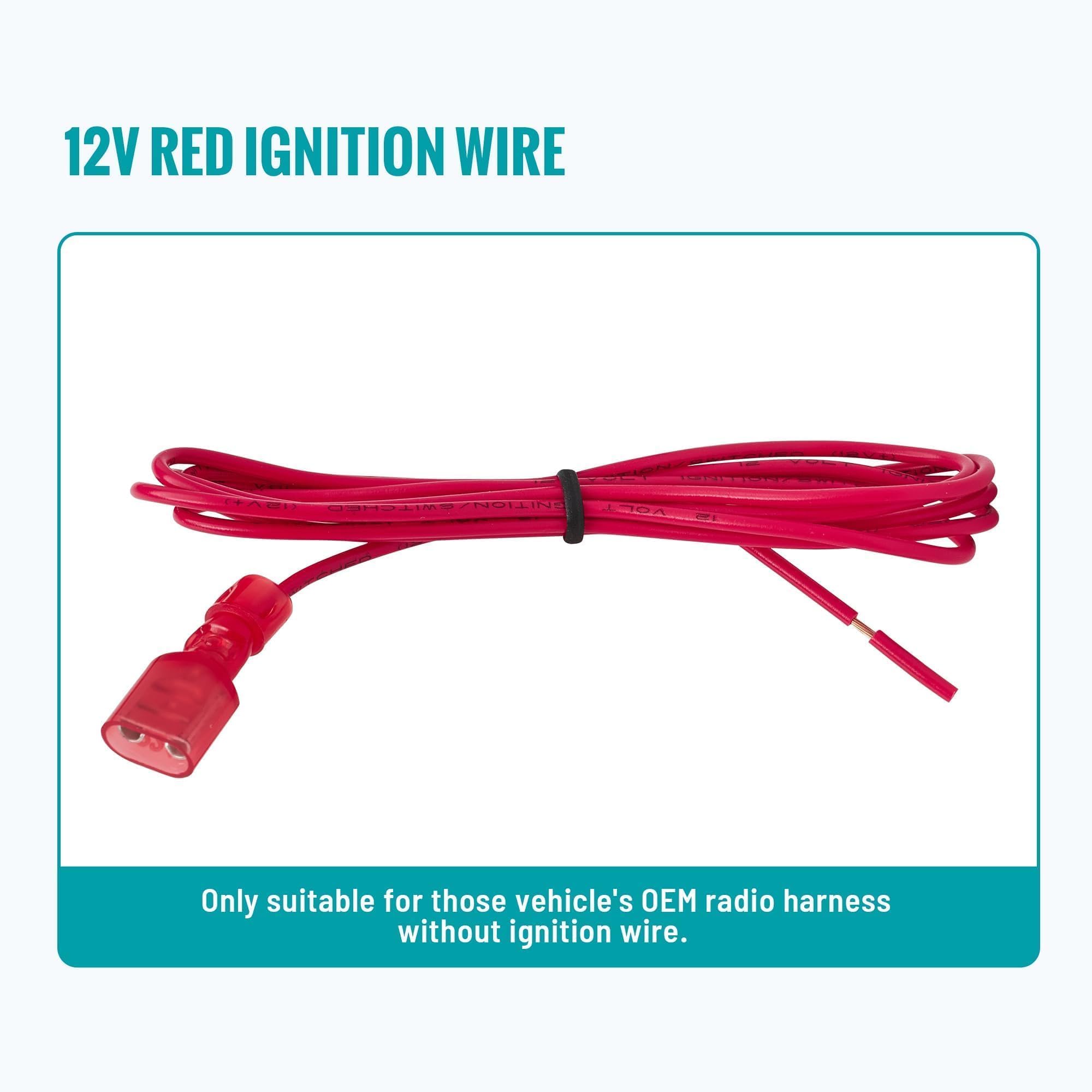 Red ignition wire: Suitable for those vehicle’s OEM radio harness without ignition wire; only need to connect one end of the Red Ignition Wire to the ACC wire that equipped with the aftermarket radio and the other end to the ACC harness position located behind the vehicle's ignition switch