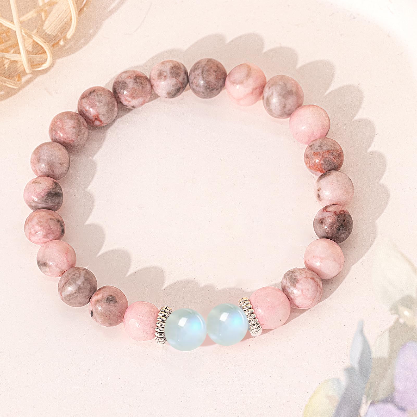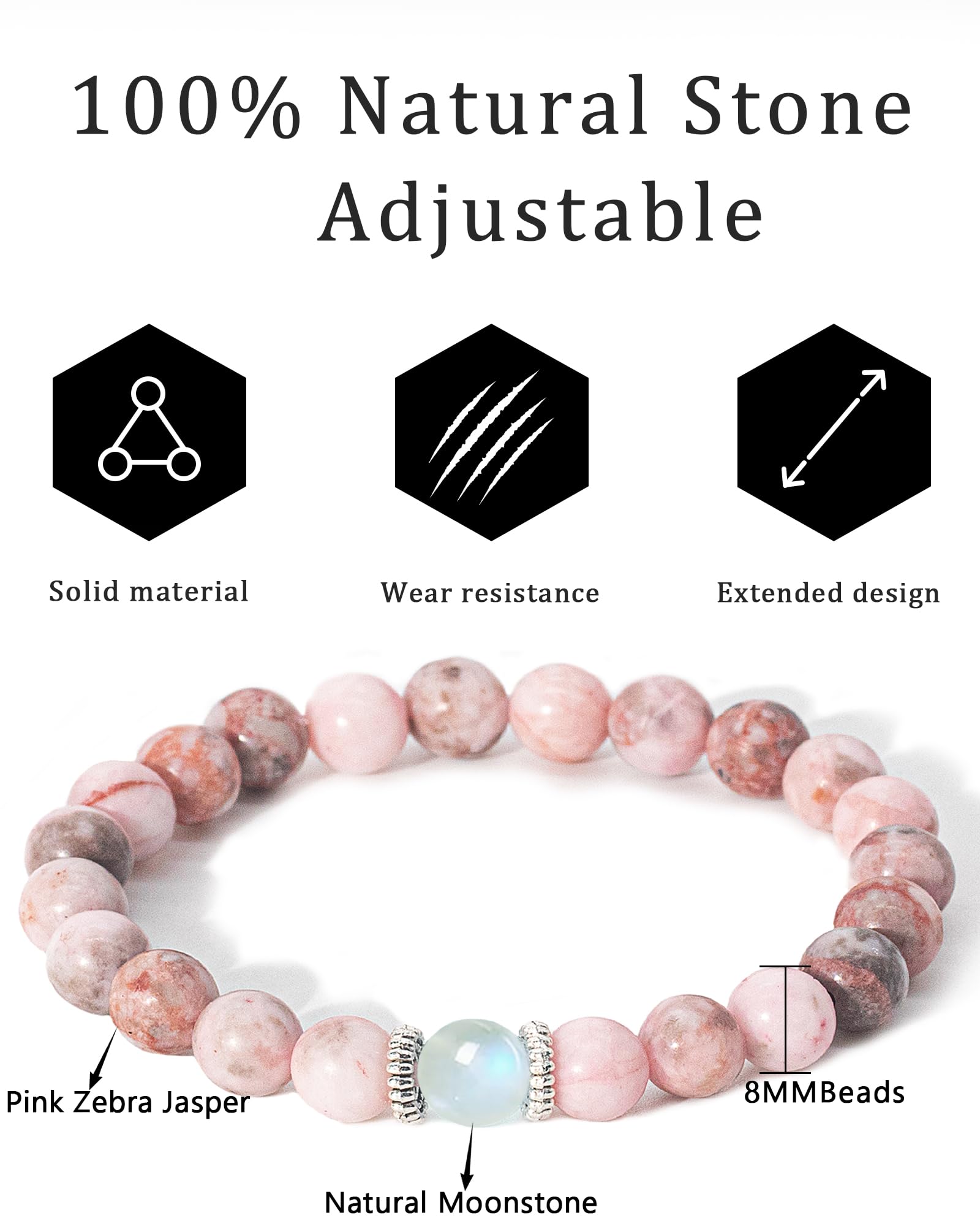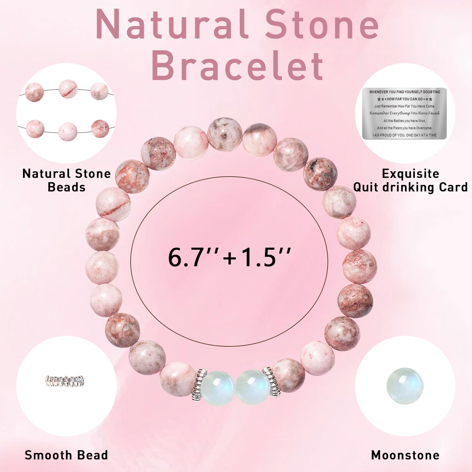 【Unique Gifts for Women】This handmade beaded bracelets for women combined with protect Pink Zebra Jasper and Love Moonstone. come with inspirational sobriety card and nice gift box that can be given as a gift directly. make a great gifts for women to celebrate two year of sobriety, Wearing this healing bracelets is excellent to help Purify Stress or Anxiety, Bring her Love and Protection, Guides make Right Decisions, attract Good Fortune, brings her Powerful Strength, Courage and Confidence