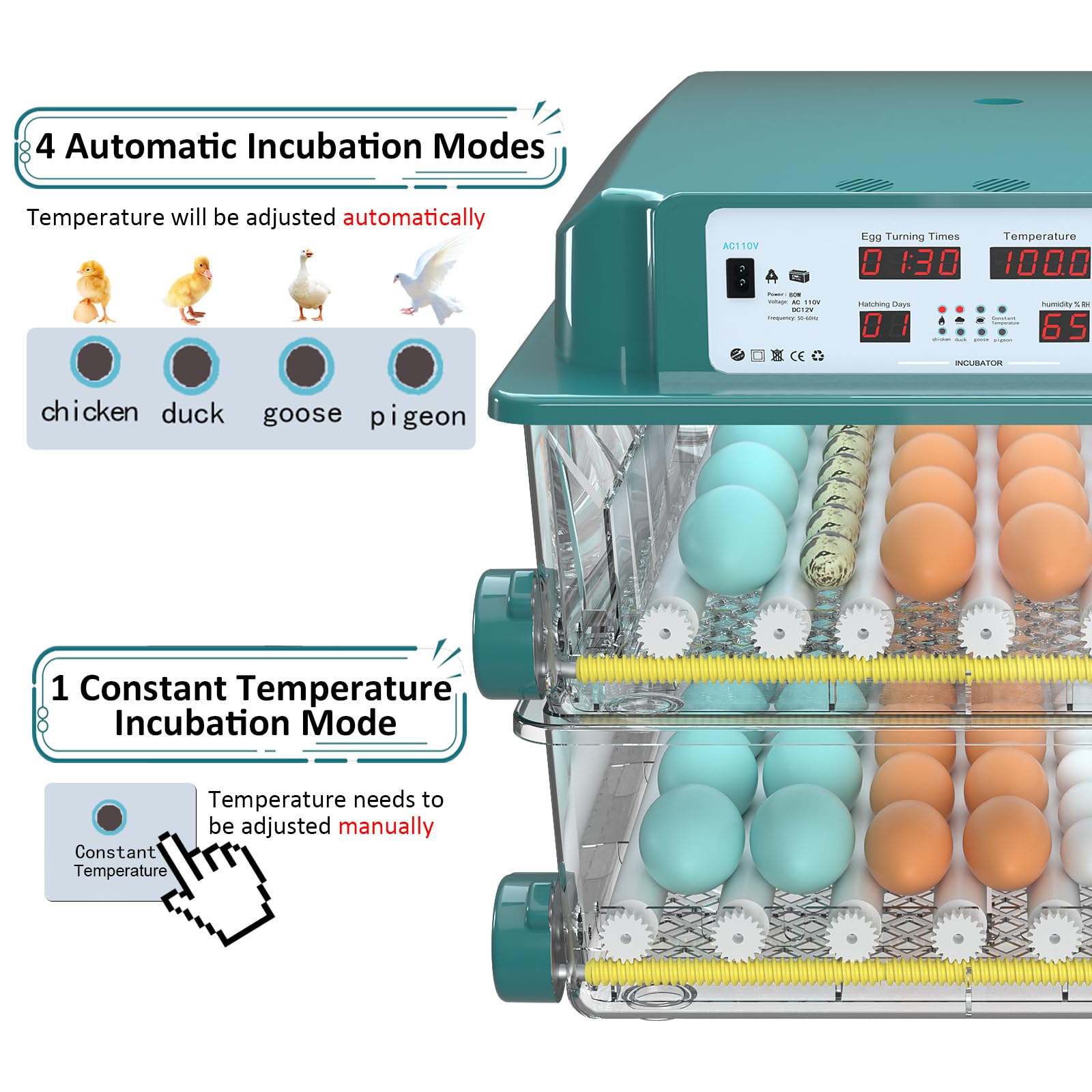 [TEMPERATURE MAINTENANCE]: This egg incubator has 2 powerful fan-driven heaters that quickly reach the set temperature and ensure a stable temperature inside the incubator. Real-time monitoring and display, with alerts for abnormal temperatures