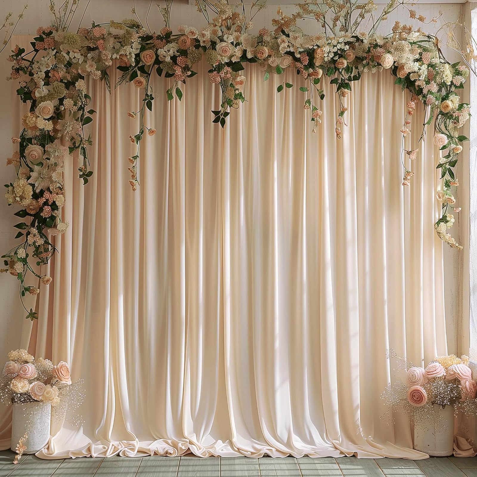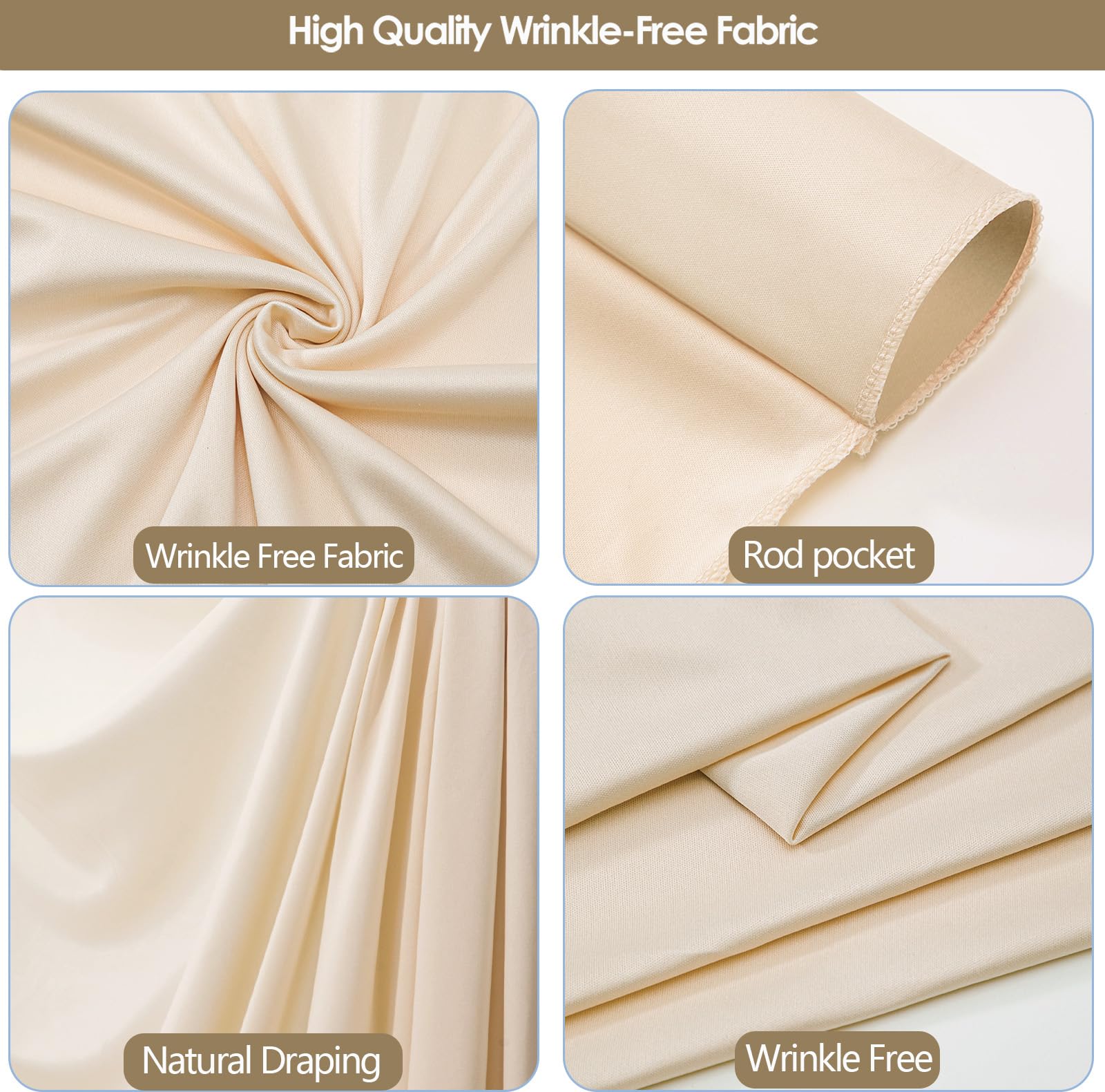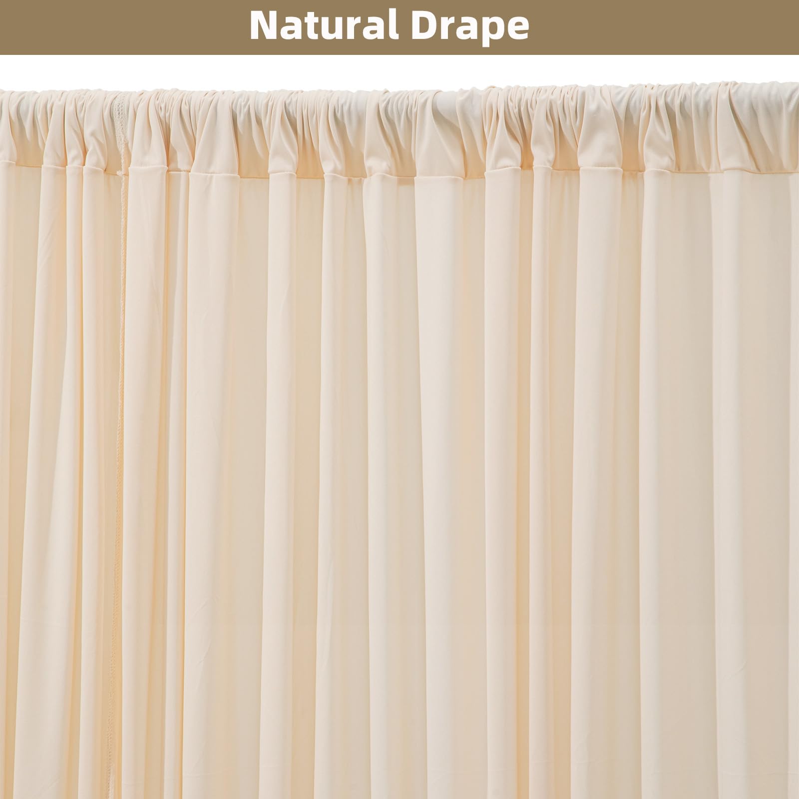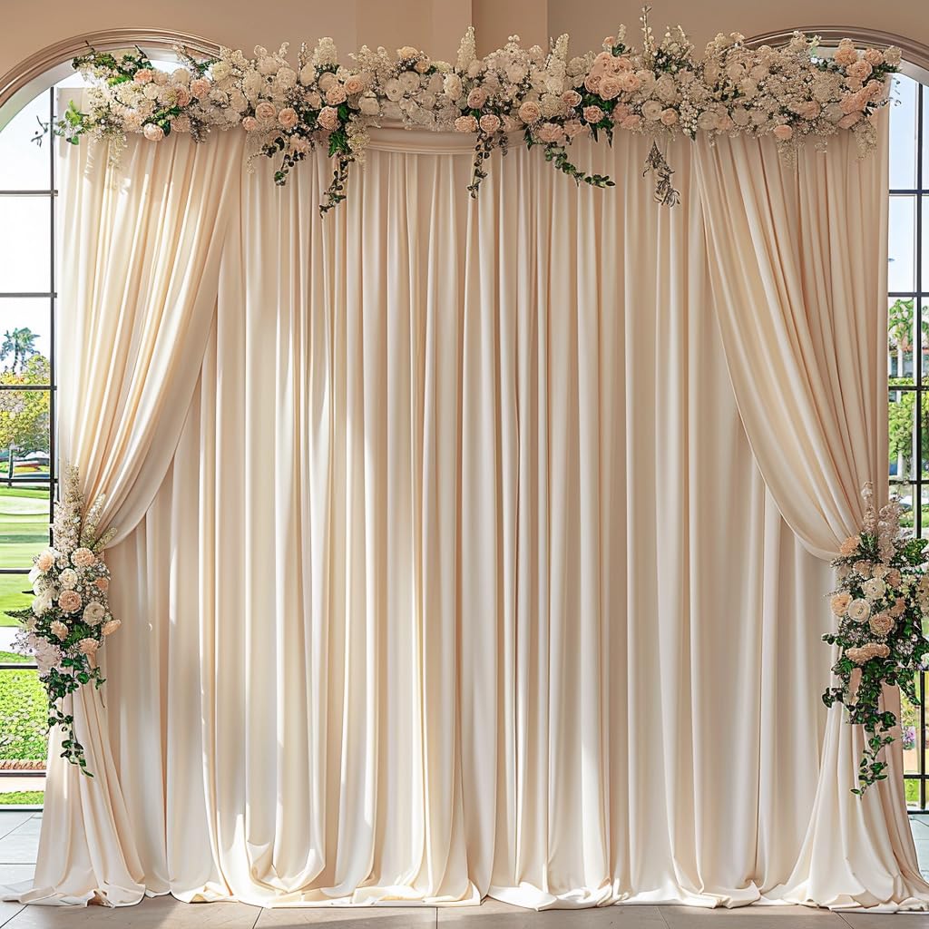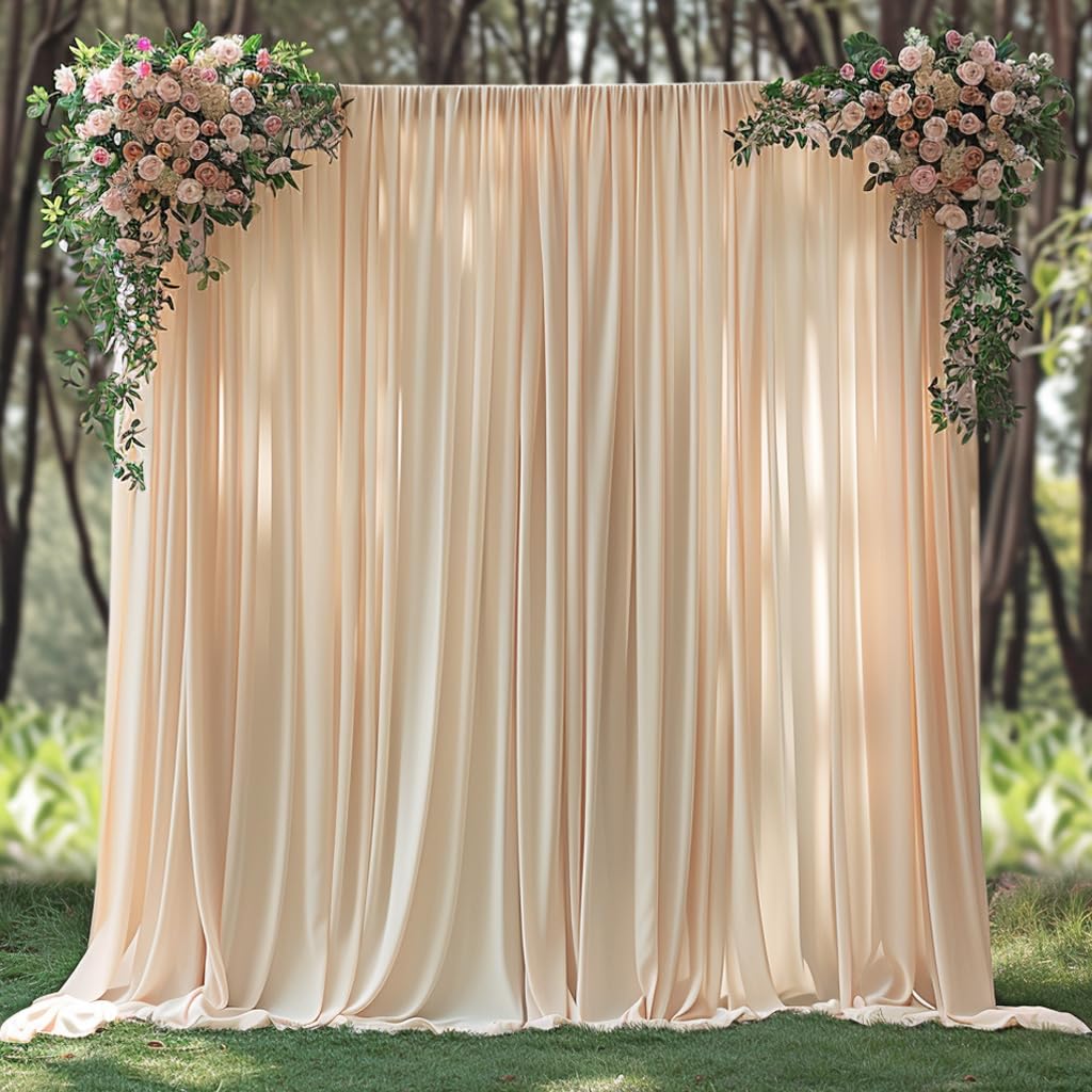High-Quality Wrinkle-Free Fabric —— Crafted from premium 100% high-quality polyester fabric, this champagne wedding backdrop offers a silky smooth texture, and an irresistibly soft touch akin to milk. The backdrop Curtains for wedding droops naturally and the texture is very good, will make your wedding more elegant