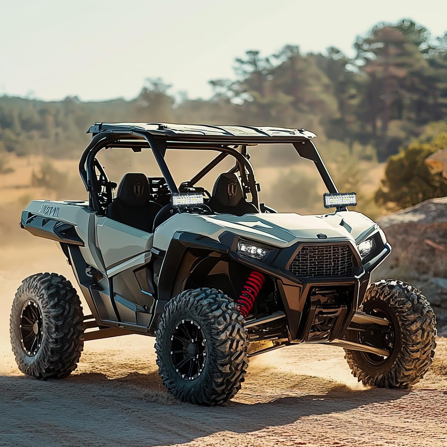 Super Bright Brightness: 75W pod lights, combination of 50 pcs superior-quality chips emit 5800-6000k bright white light, higher light transmission rate polycarbonate lenses - reduce optical loss, delivering 15000 lumens and ensuring that objects far clearly visible to prevent potential threats, offering you an unparalleled driving experience