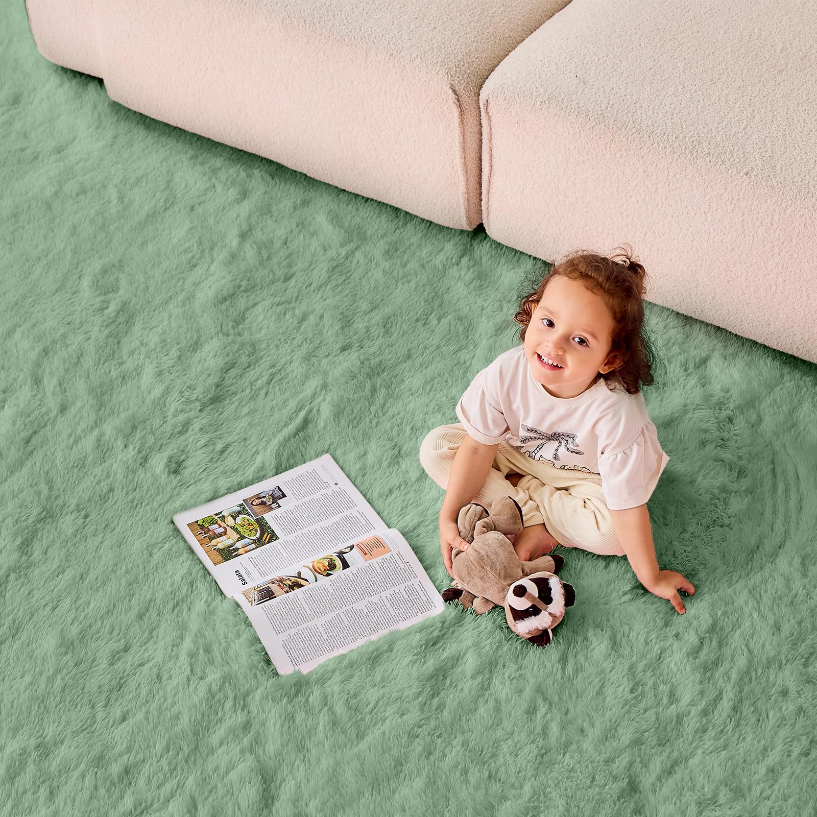 Material Excellence: Luxurious 1.4" microfiber surface meets 0.4" rebound foam cushion, anchored by 5.3 oz/yd² non-slip backing – a triple-layer sanctuary for little feet