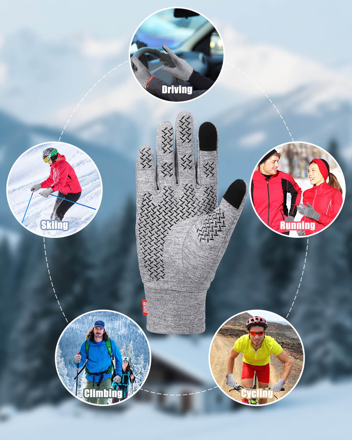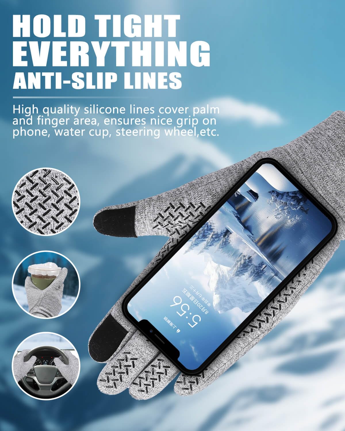 šćNon-Slip Palm Designć Covered with anti-slip design of big silicone lines on the palm and fingers, which effectively increases the grip and abrasion resistance of Aegend thermal winter gloves. You can grip things firmly to ensure safety. Such as gripping the steering wheel firmly when driving, and holding your phone well to prevent it from falling and breaking.