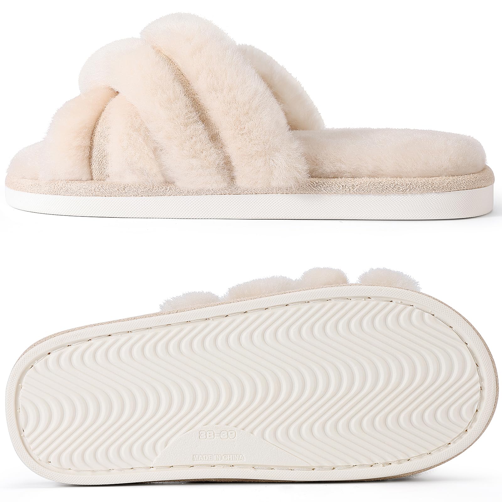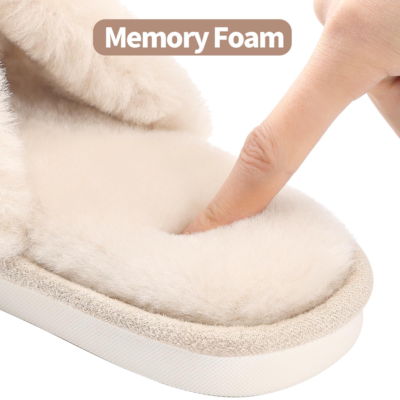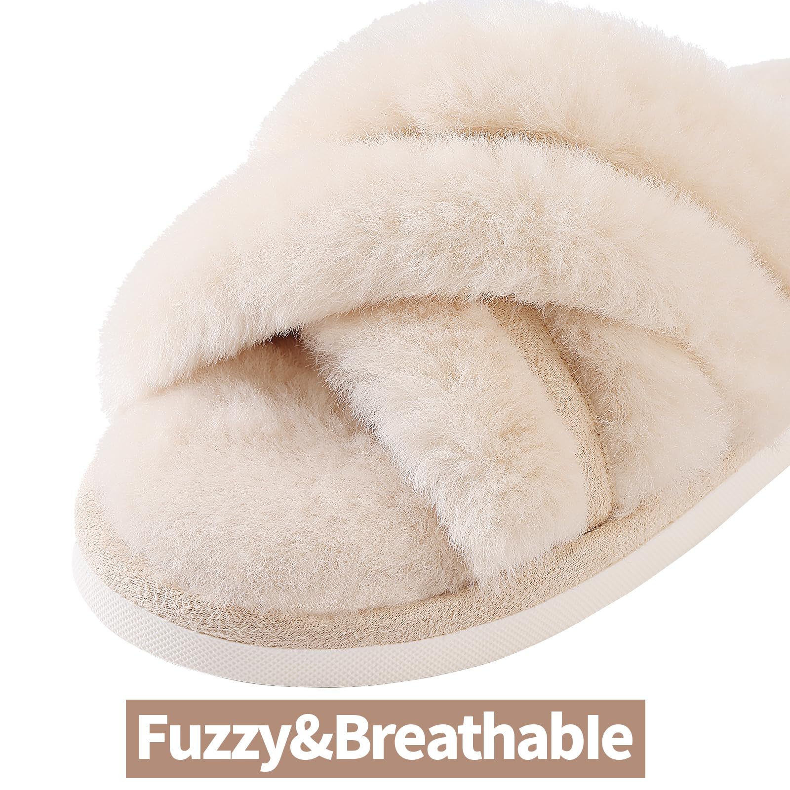 FUZZY HOUSE SLIPPERS: Fuzzy faux fur upper and footbed surround your foot in cloud comfort, making your feet cozy. A good choice for reducing muscle fatigue after a long day of work.