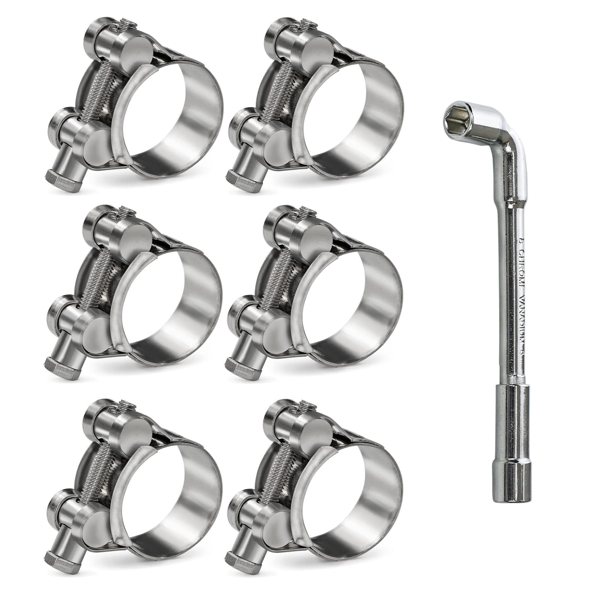 [Clamps Size] T bolt clamp adjustable work range 2.67-2.87"(68mm to 73mm); Width: 0.94"(24mm); Thickness 0.8mm(0.031"); the screw bolt M8*60mm. to save you time, please carefully check and measure your hose OD to fit working range before purchasing our products.
