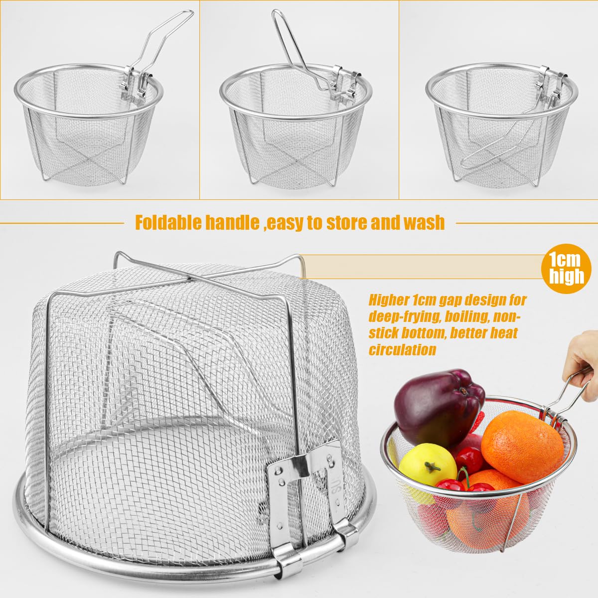 Stainless Steel Deep Fry Basket with Folding Handle Round Wire Fry Basket French Fry Chip Basket Metal Strainer for Home Restaurant Cooking Serving (7Inch)