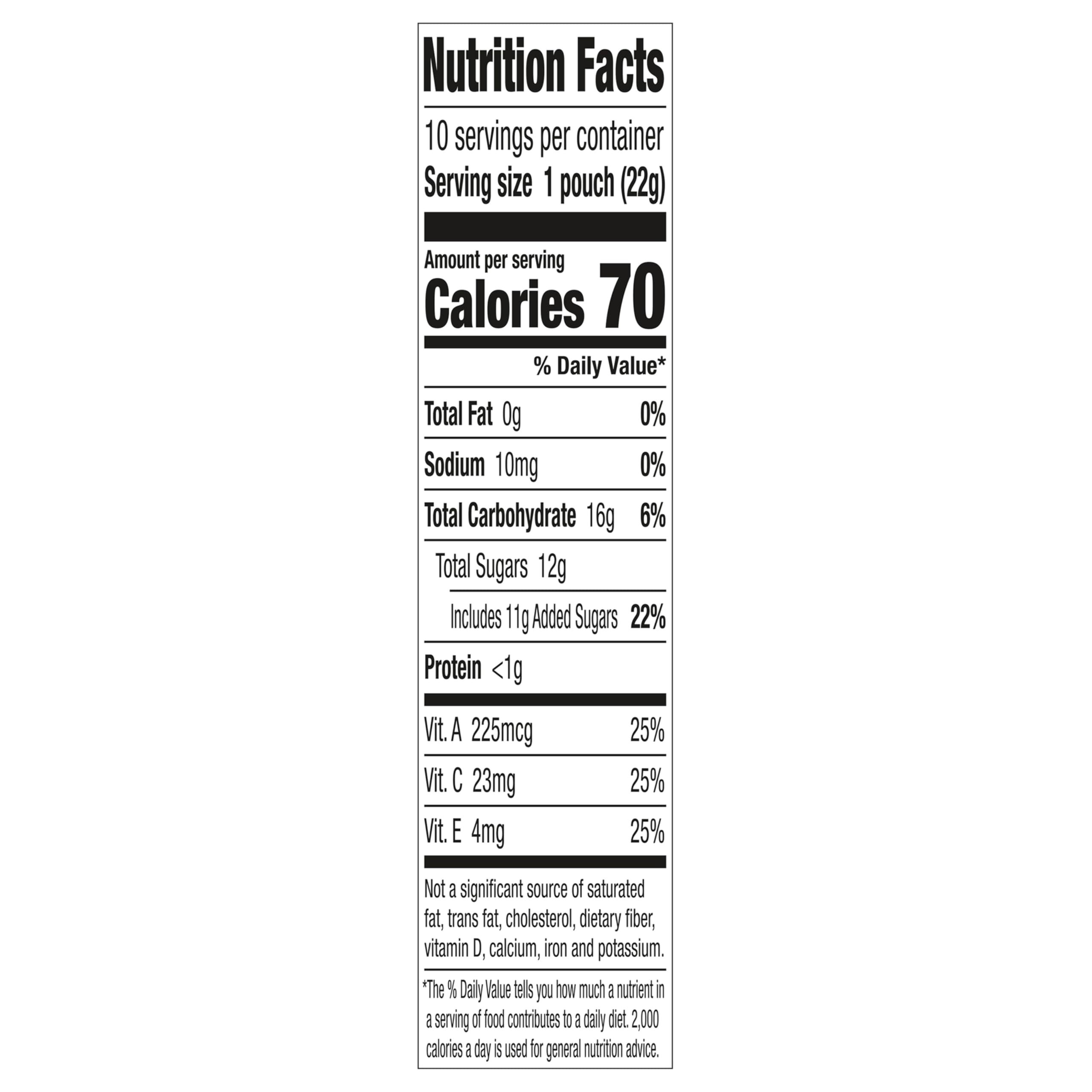 A PICK YOU CAN FEEL GOOD ABOUT: One of the funnest snacks ever invented, they are fat free, gluten free and an excellent source of Vitamin A, C, and E. Plus, they are only 70 calories per pouch