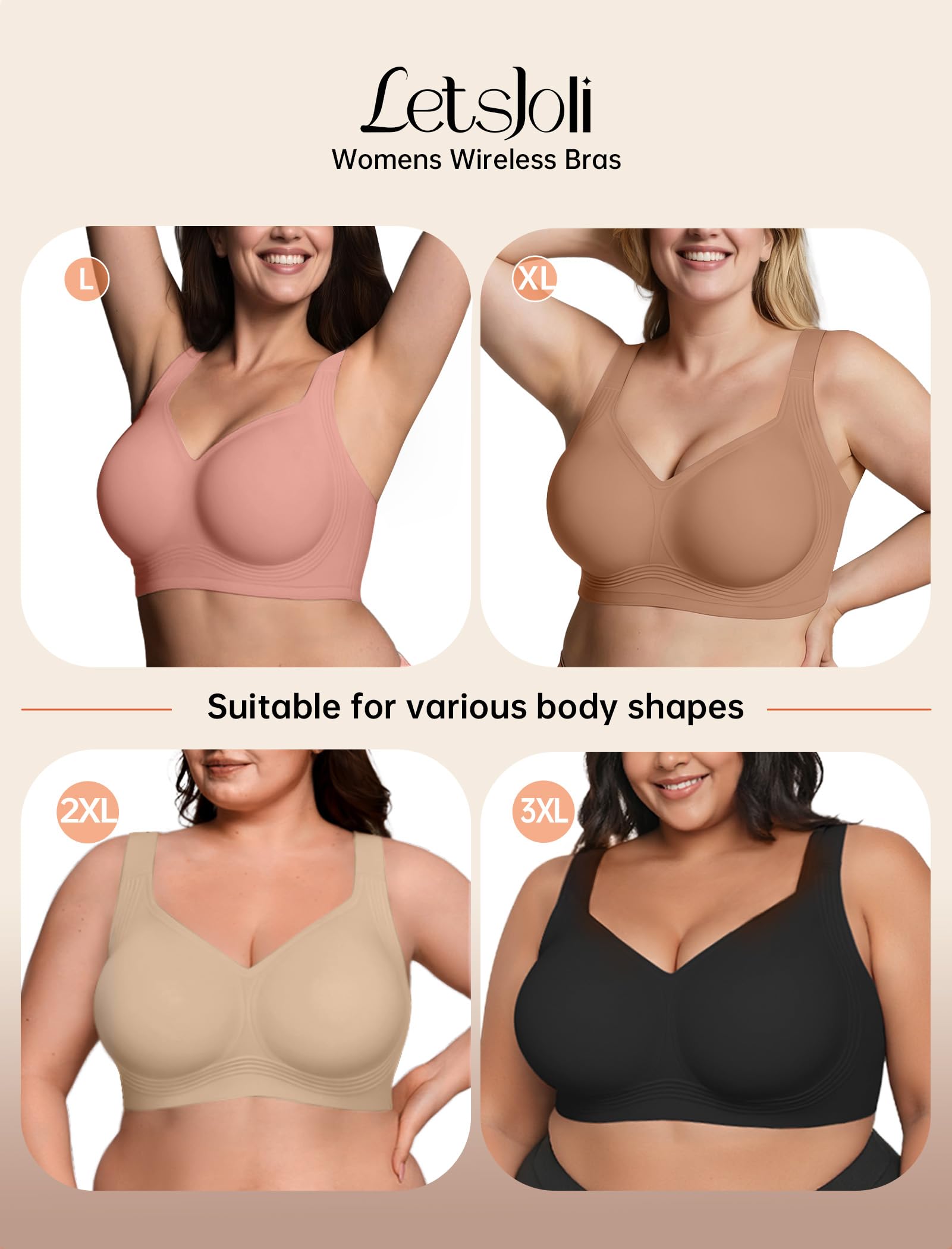 【U-back & Invisible Cross Straps,fit for All Occasions】 The U-back wearing is comfortable and unrestricted, ideal for everyday wear like traveling, working, and lounging at home. The seamless bra can be used as sleep bras, tshirt bras, yoga bra, light sport bra & casual everyday wear. The Cross-back style enhances support and lift, perfect for running, working out, and cycling. LetsJoli push up bras for women will go well with any outfit, such as a t-shirts, blouses, tank tops, dresses, etc.