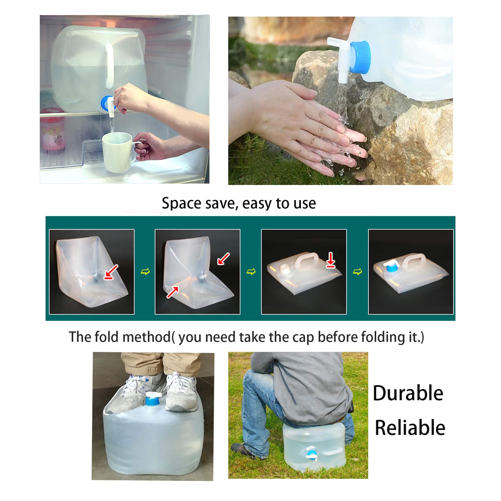 5.3 Gallon volume is very suitable to keep it as in emergency or in some disaster event. Also it is great for daily use and outdoor activities like camping, RV, hunting, hiking, backpacking, fishing, picnics, BBQ, sports, festivals, parties and beach.