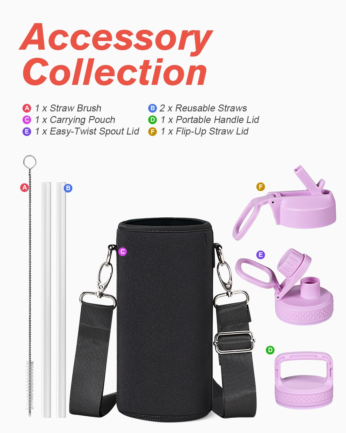 Flexible Drinking On-the-Go: This water jug comes with 3 different lids. The screw-on lid with flip-up handle is for easy ice refilling with superior portability; spout lid makes it convenient to drink hot liquid and straw lid for sipping cold