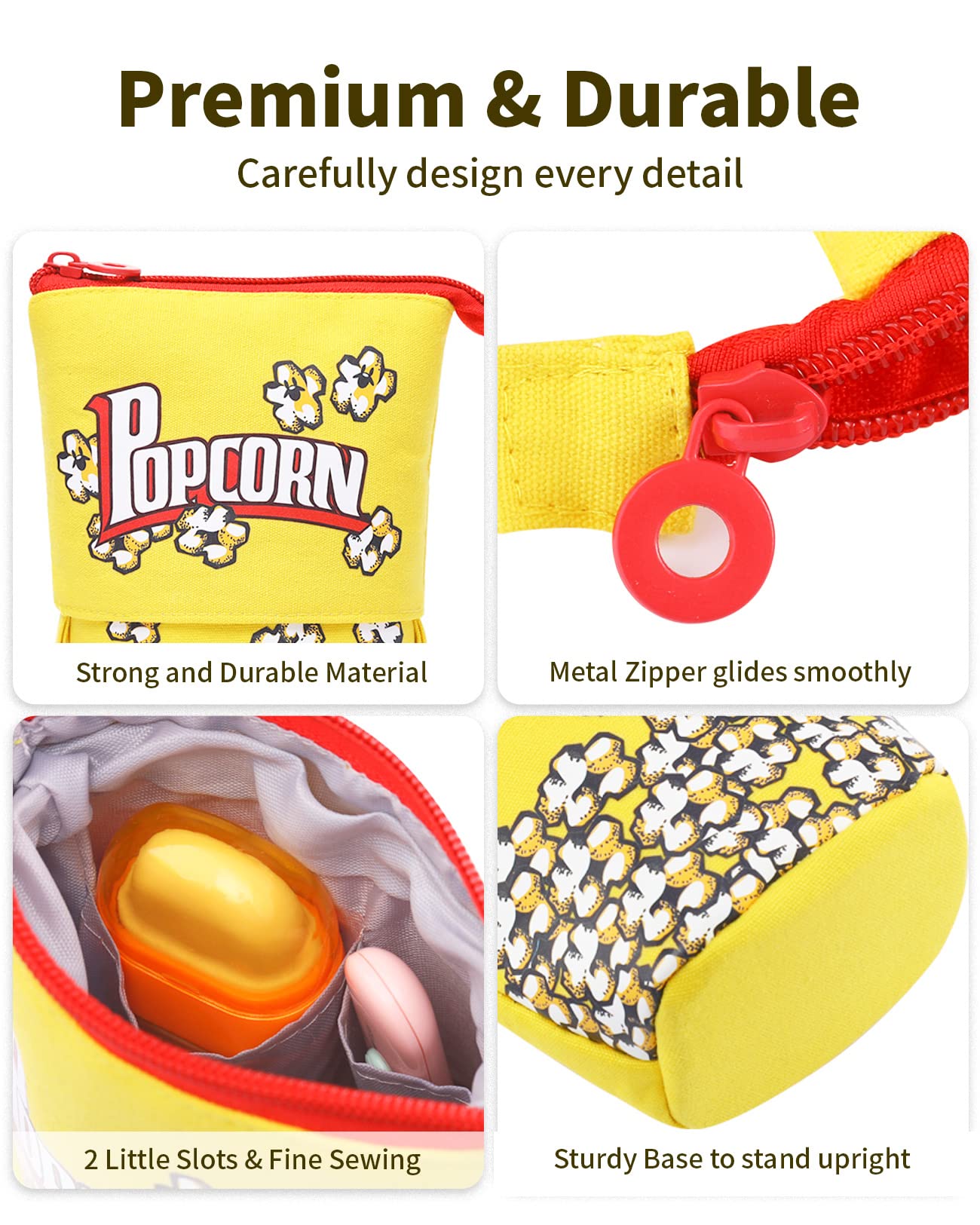 Novelty Standing Pencil Case: Combining a cute look with a retractable design, this cute pencil case definitely adds a touch of vibe to any workspace! Not only does it have a playful and fun feel, but it's roomy for stationery , cosmetics, etc.