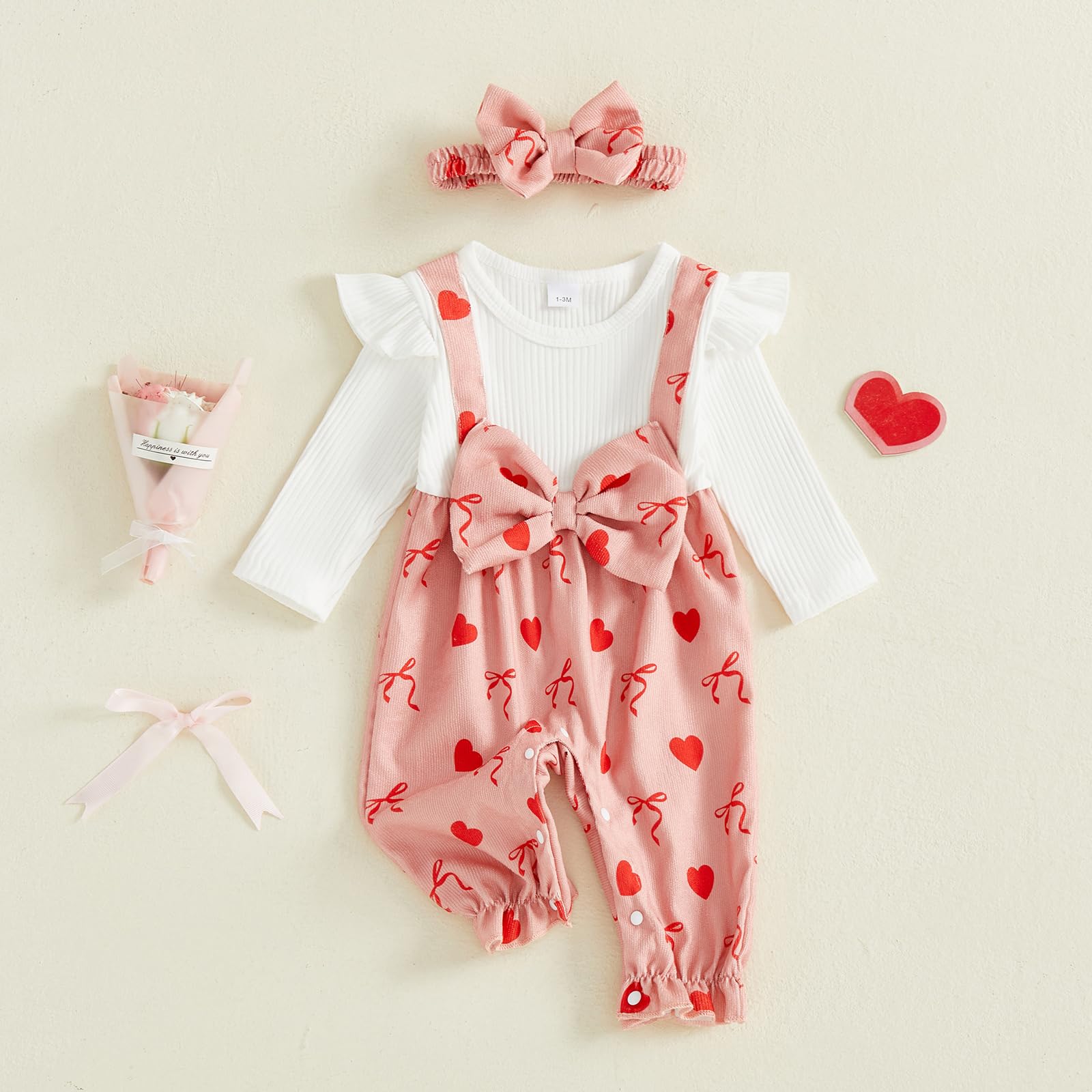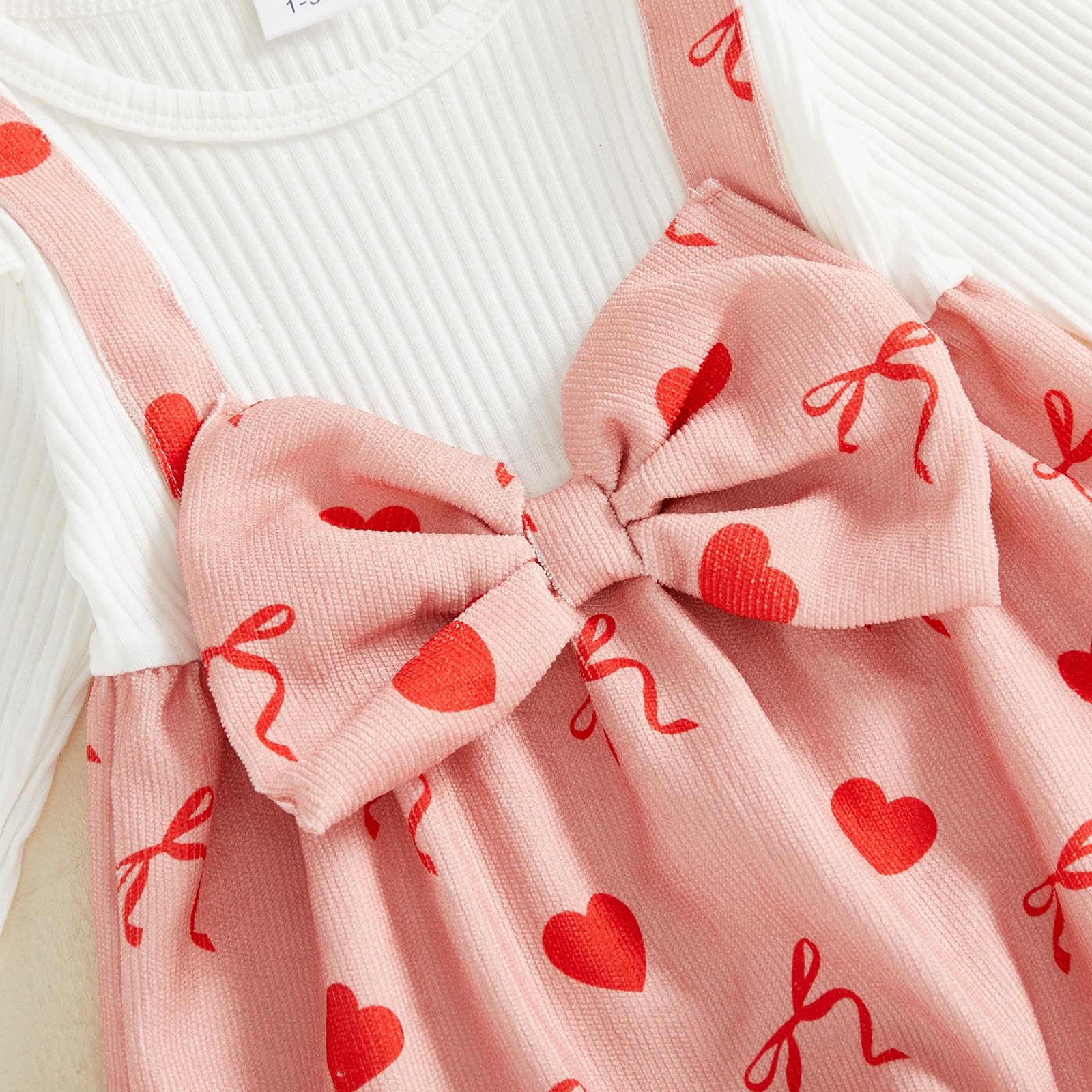 Design: Baby girl valentiens day clothes,spring baby girl clothes,newborn baby girl bubble romper,lover heart and bow print one piece jumpsuit,corduroy baby warm onesie,fake two pieces patchwork,infant baby girl clothes,baby girl vintage outfits,newborn baby girl coming home outfit